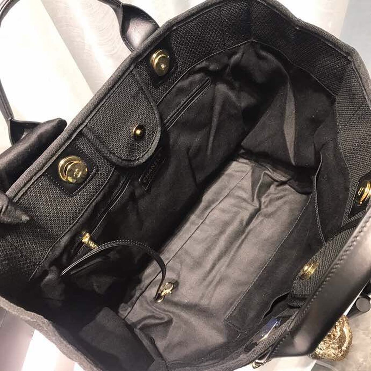 CC Deauville Tote Canvas Bag Black/Grey/Multi For Womtlm 14.9in/38cm