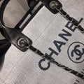 CC Deauville Tote Canvas Bag Light Grey For Womtlm, Womtlm’s Handbags, Shoulder Bags 15in/38cm A66941