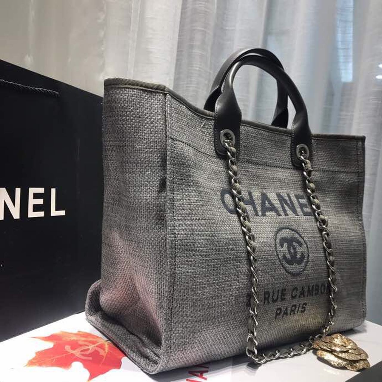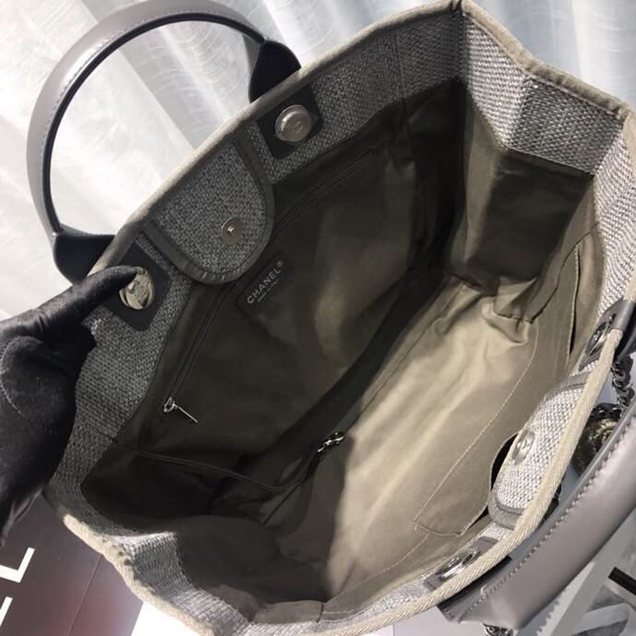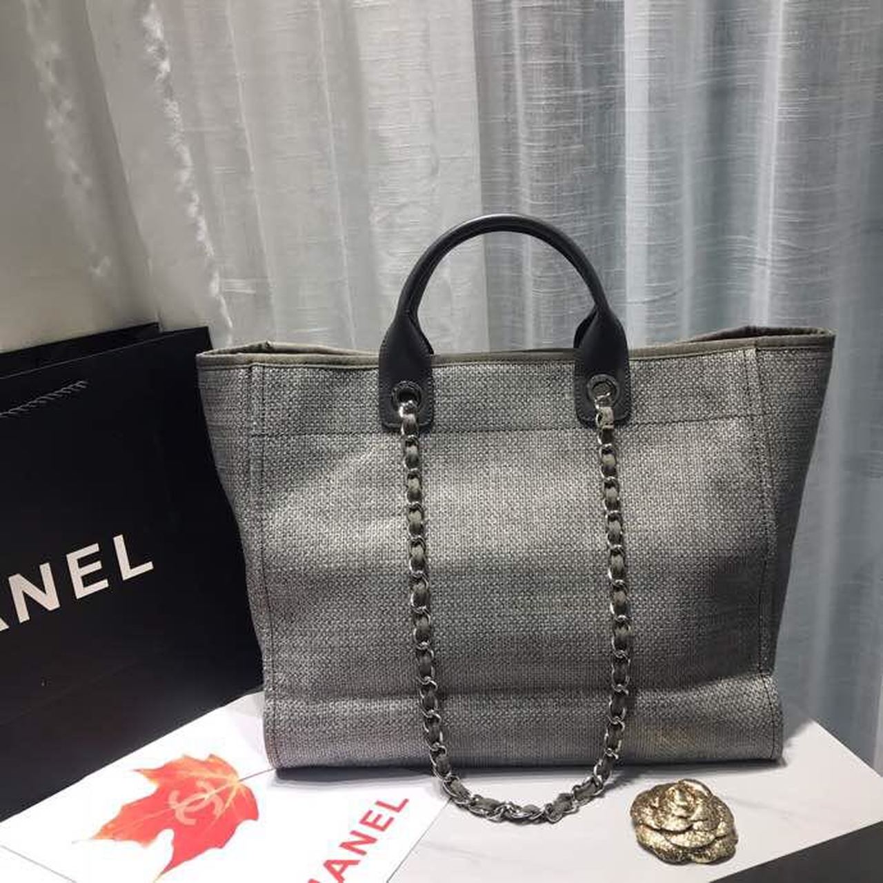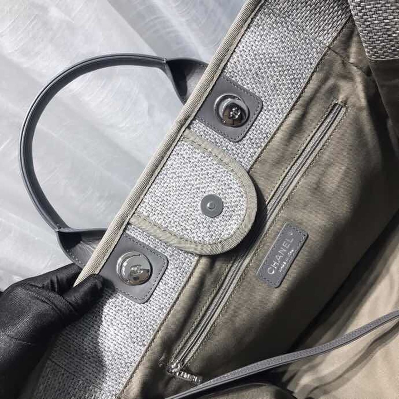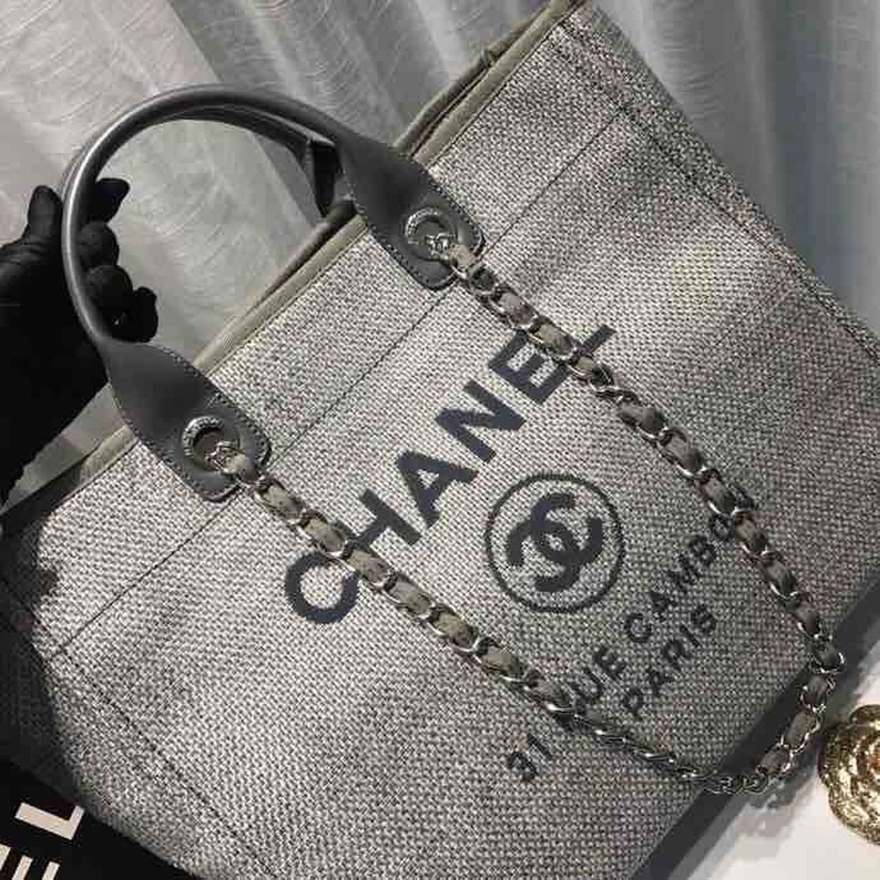 CHL Deauville Tote Tweed Canvas Bag Fall/Winter Collection, Light Grey/ Dark Grey For WomTLM 15in/38cm