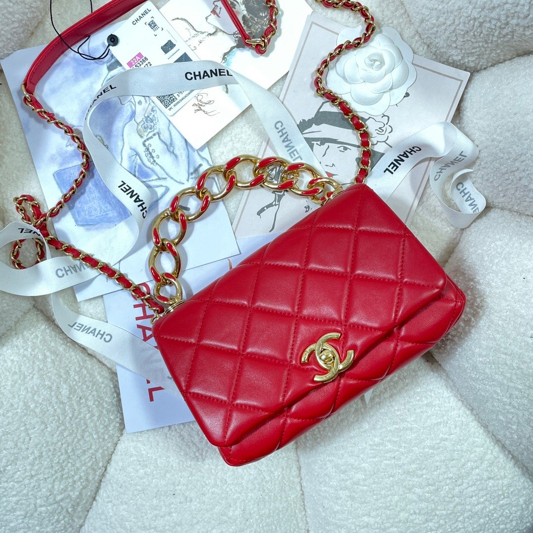 CHL Flap Bag Gold Hardware Red For WomTLM, WomTLM’s Handbags, Shoulder Bags 7.9in/20cm AS3366