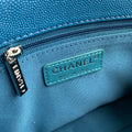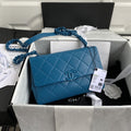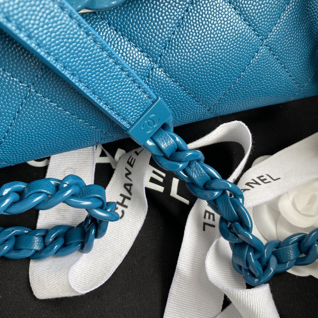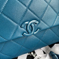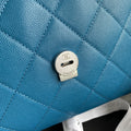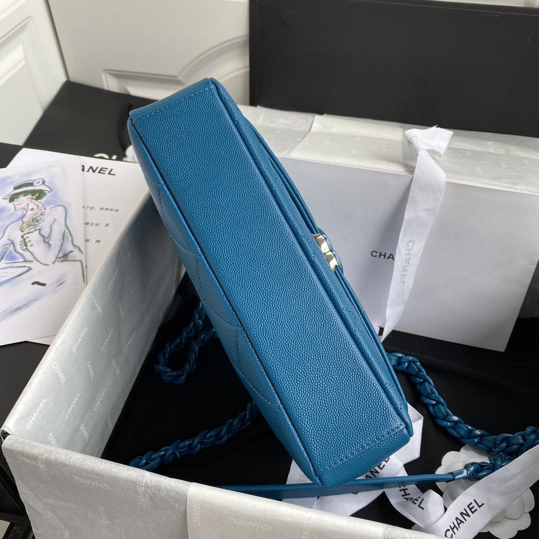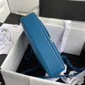 CC Flap Bag Red Hardware Grained Blue For Womtlm, Womtlm’s Handbags, Shoulder Bags 9.4in/24cm AS2303