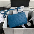 CHLFlap Bag Red Hardware Grained Blue For WomTLM, WomTLM’s Handbags, Shoulder Bags 9.4in/24cm AS2303