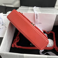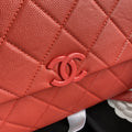 CC Flap Bag Red Hardware Grained Red For Womtlm, Womtlm’s Handbags, Shoulder Bags 9.4in/24cm AS2303