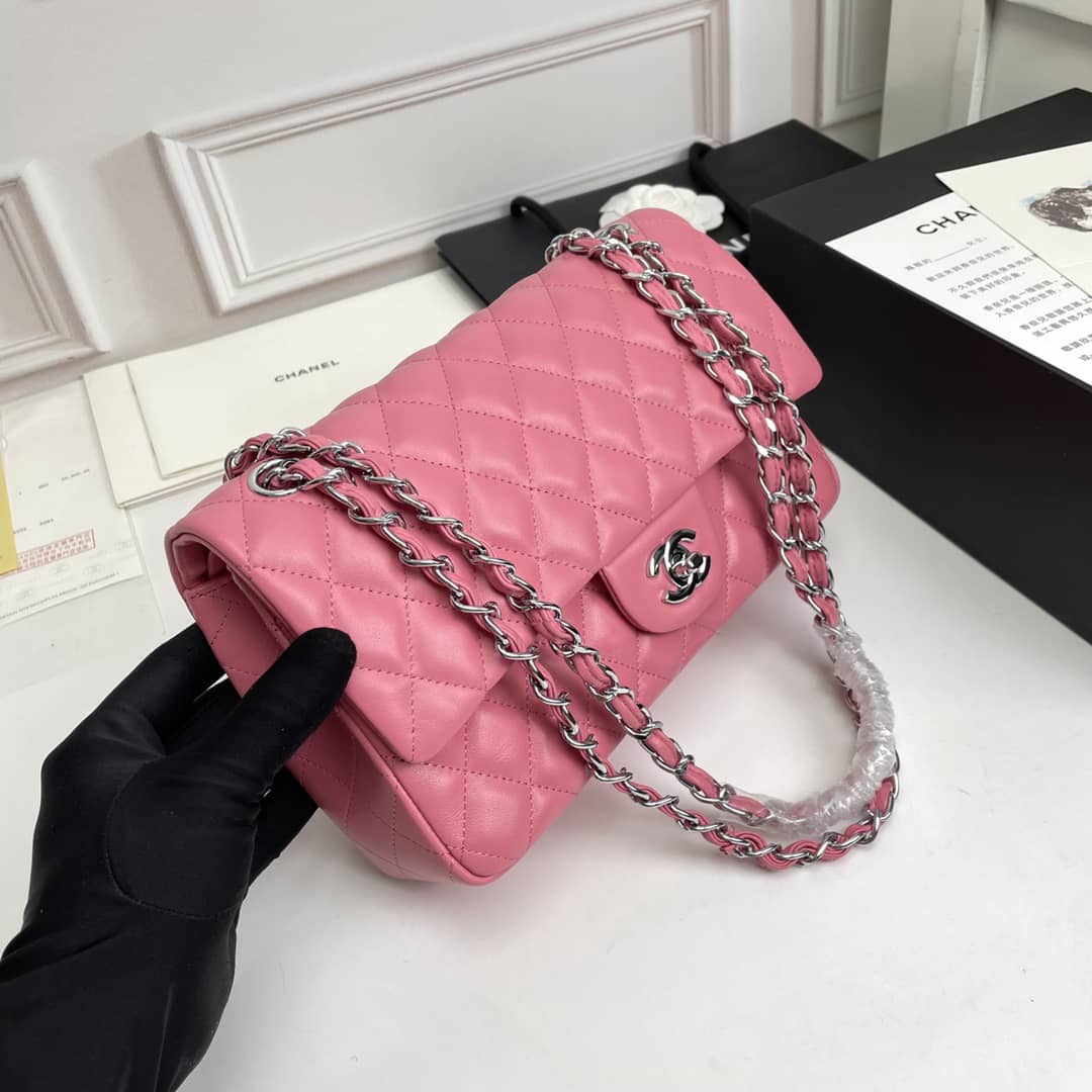 CC Large Classic Handbag Silver Hardware Pink For Womtlm, Womtlm’s Handbags, Shoulder Bags 11.8in/30cm