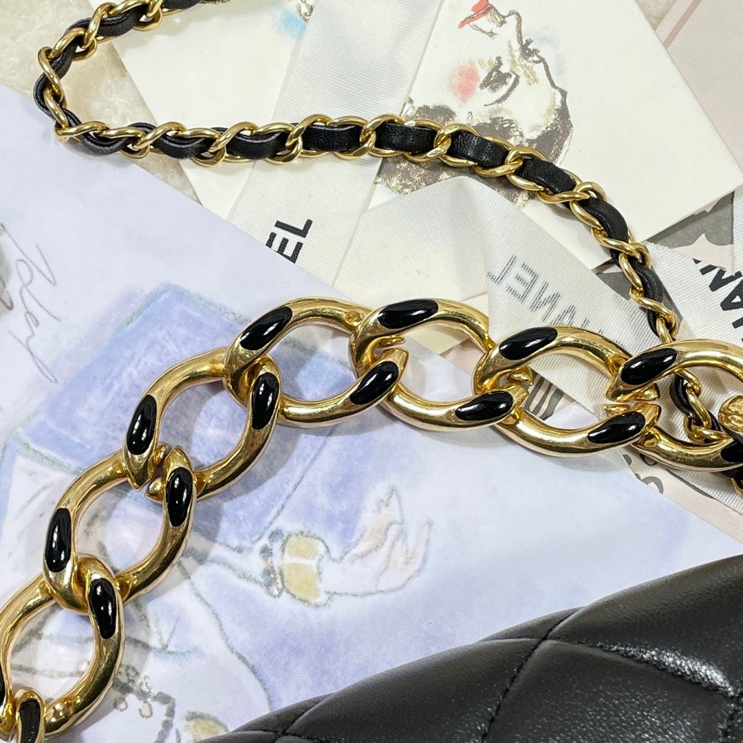 CC Large Flap Bag Gold Hardware Black For Womtlm, Womtlm’s Handbags, Shoulder Bags 9.1in/23cm AS3367