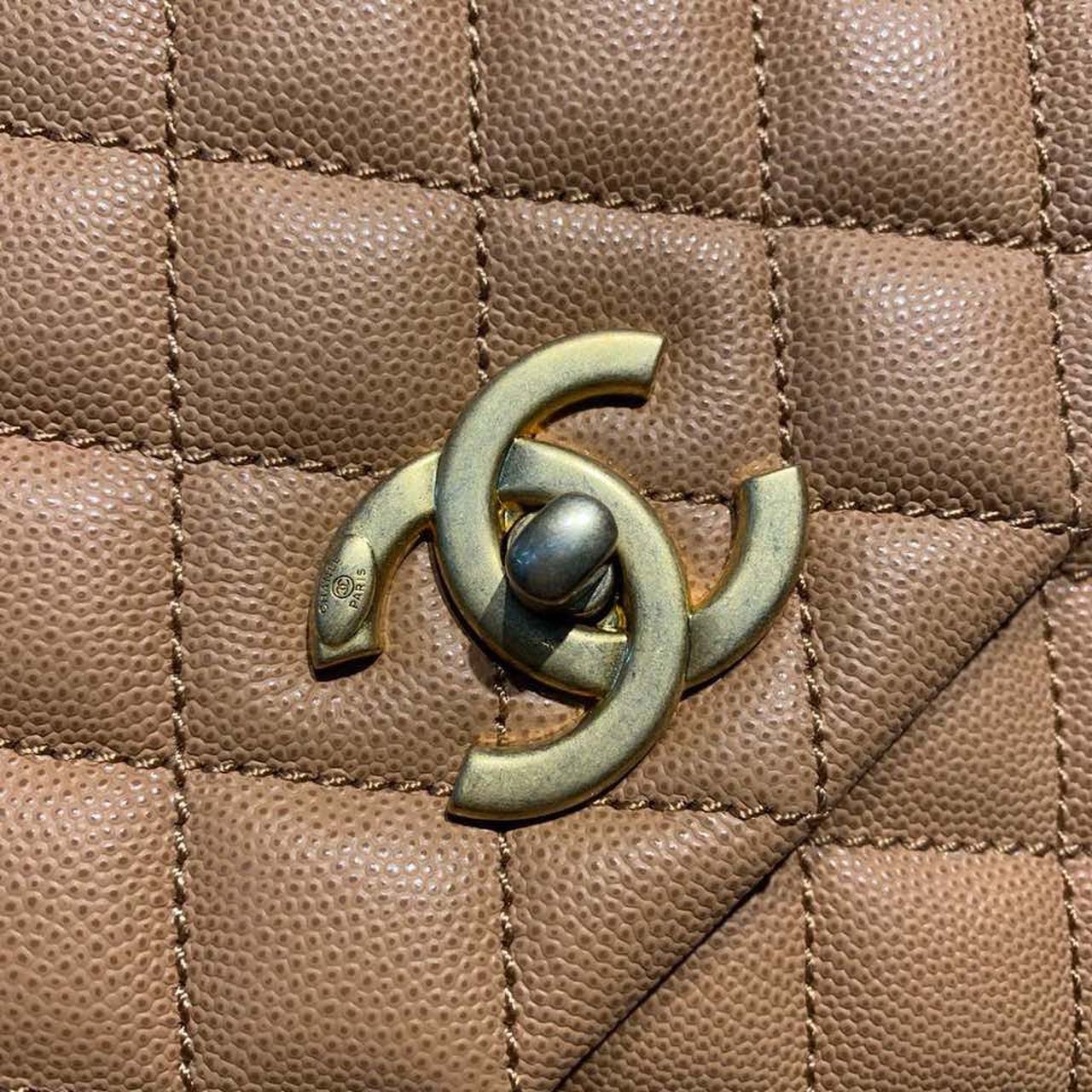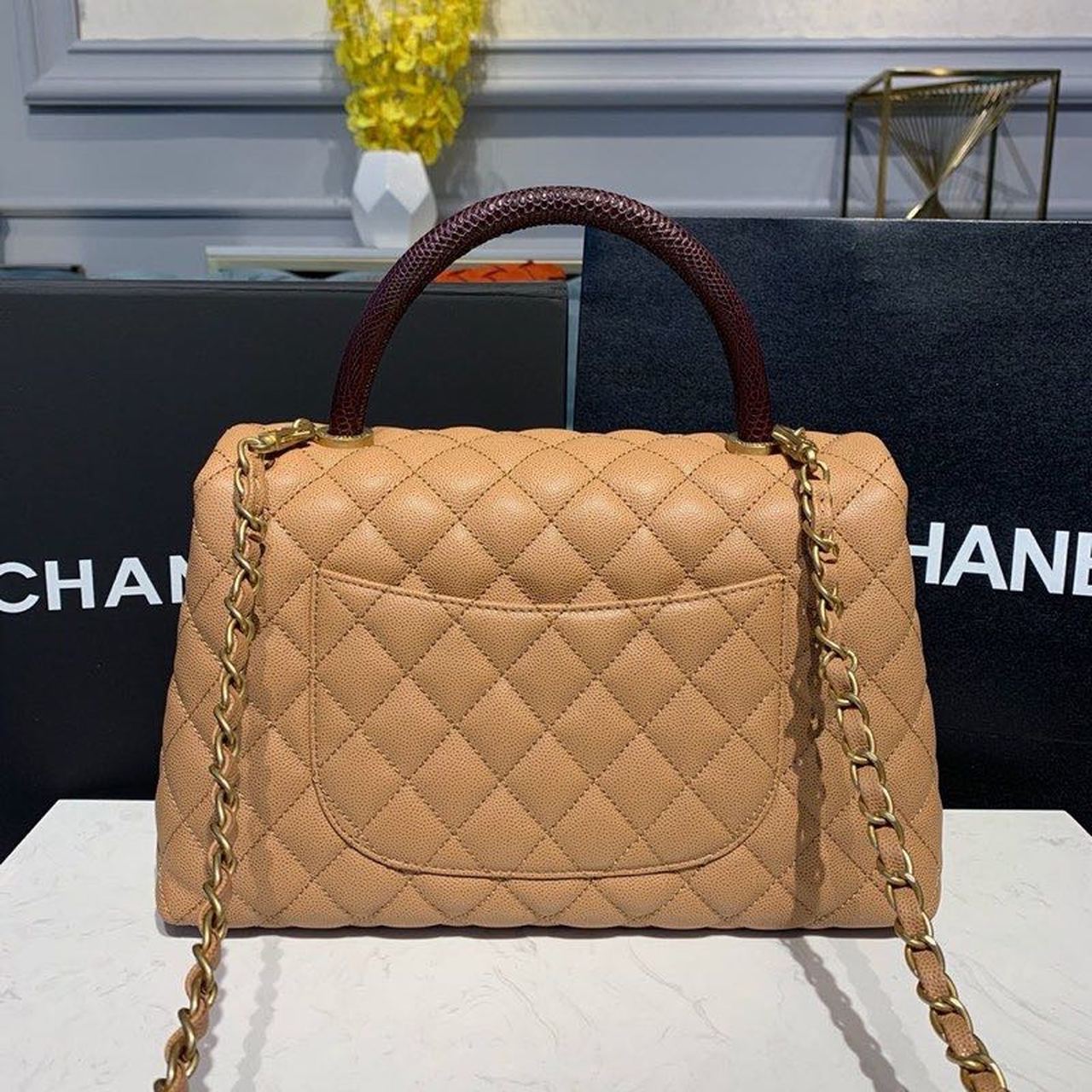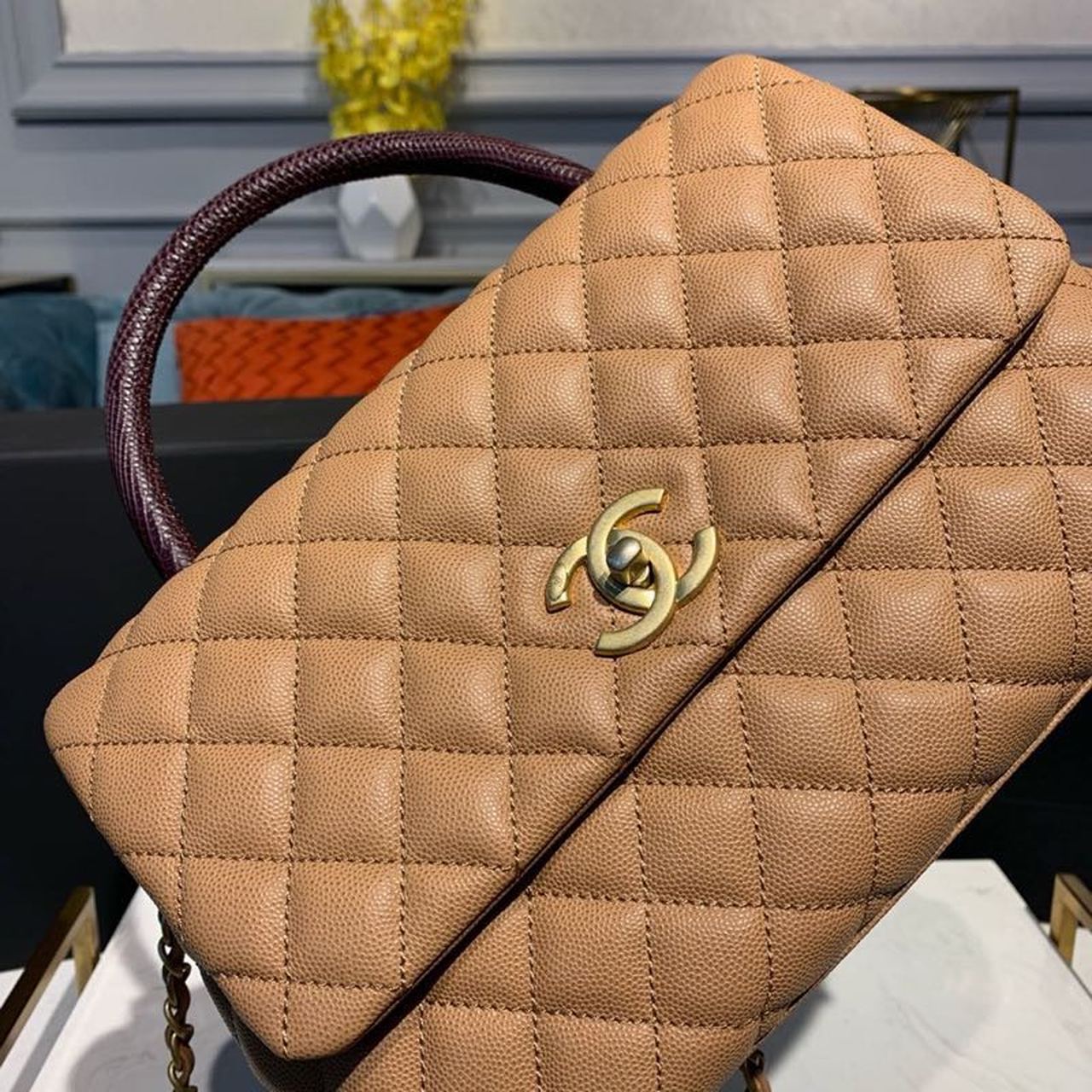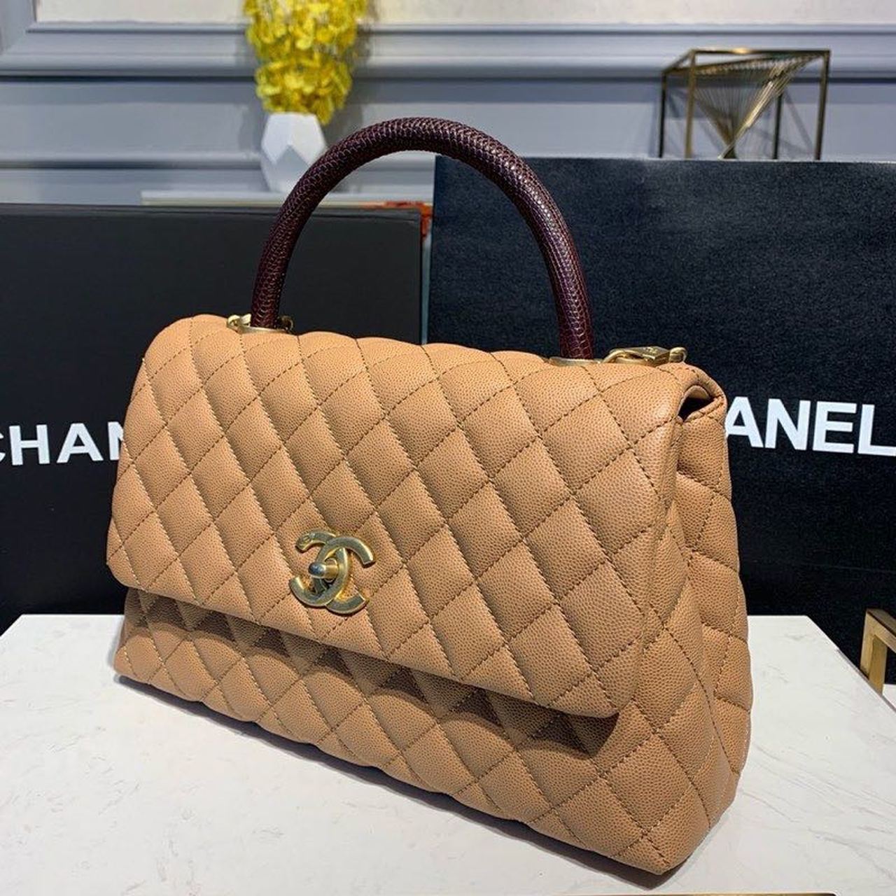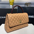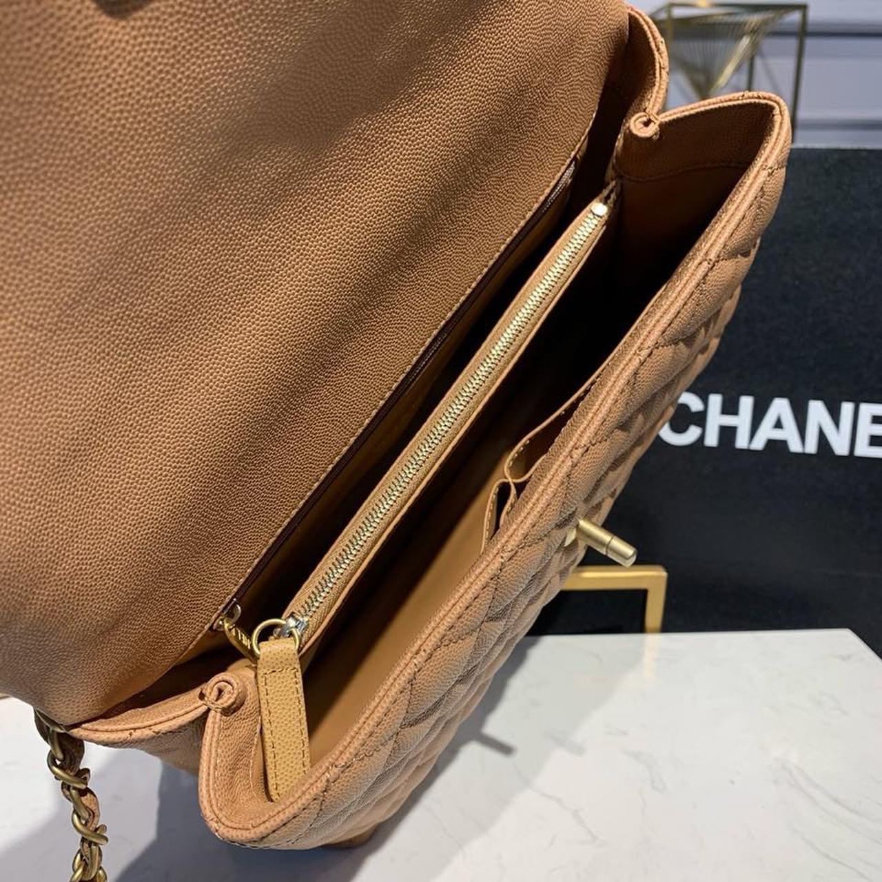 CC Large Flap Bag With Top Handle Light Brown For Womtlm, Womtlm’s Handbags, Shoulder And Crossbody Bags 11in/28cm A92991