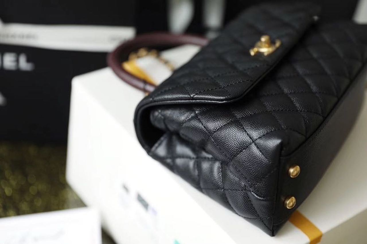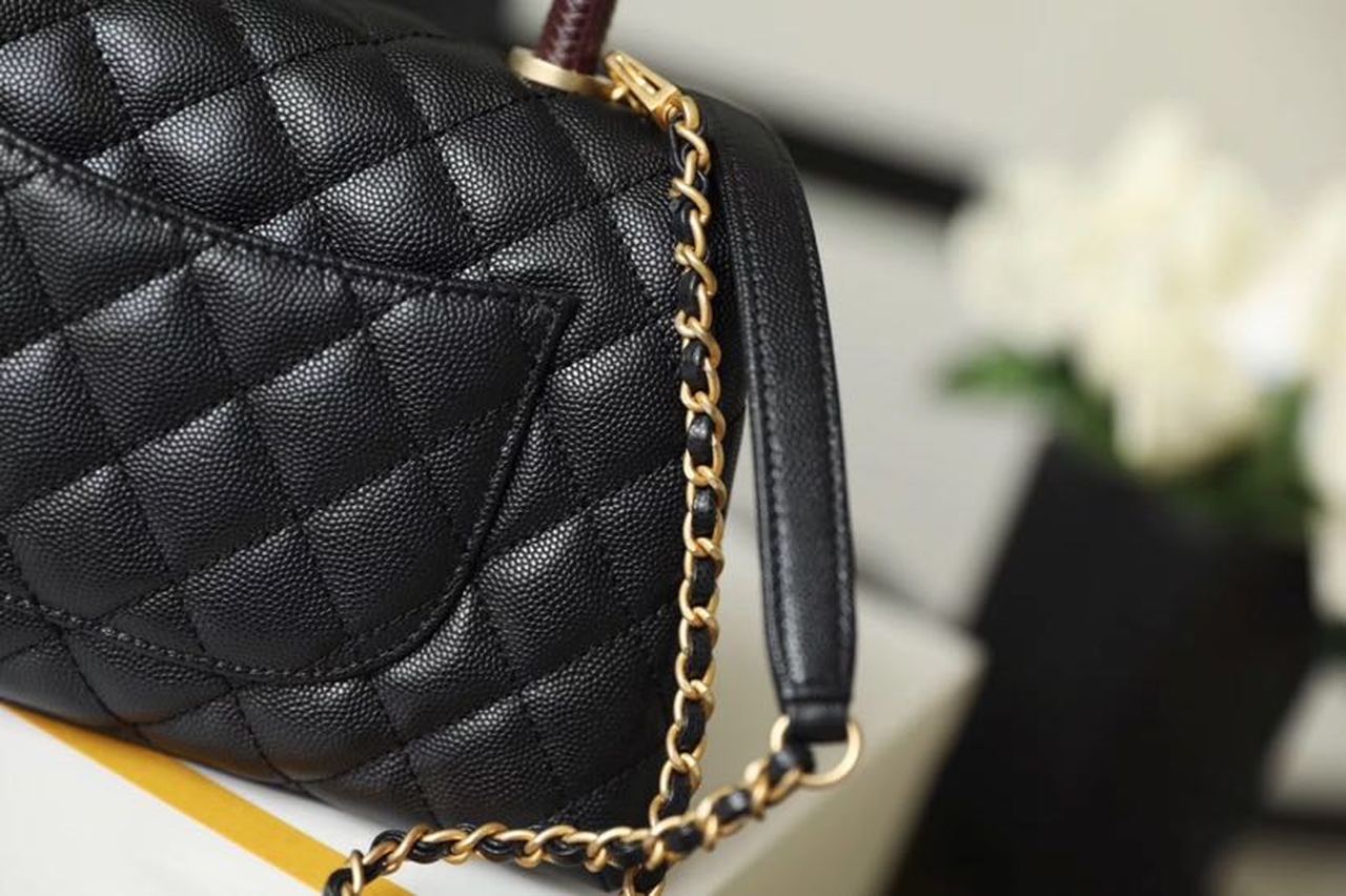 CC Medium Flap Bag With Top Handle Black For Womtlm, Womtlm’s Handbags, Shoulder And Crossbody Bags 9in/23cm A92990