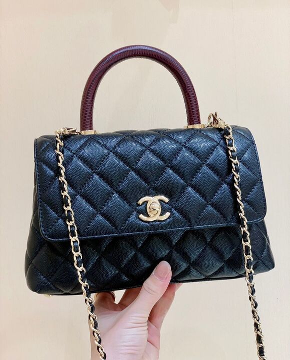 CC Medium Flap Bag With Top Handle Navy Blue For Womtlm, Womtlm’s Handbags, Shoulder And Crossbody Bags 9in/23cm A92990