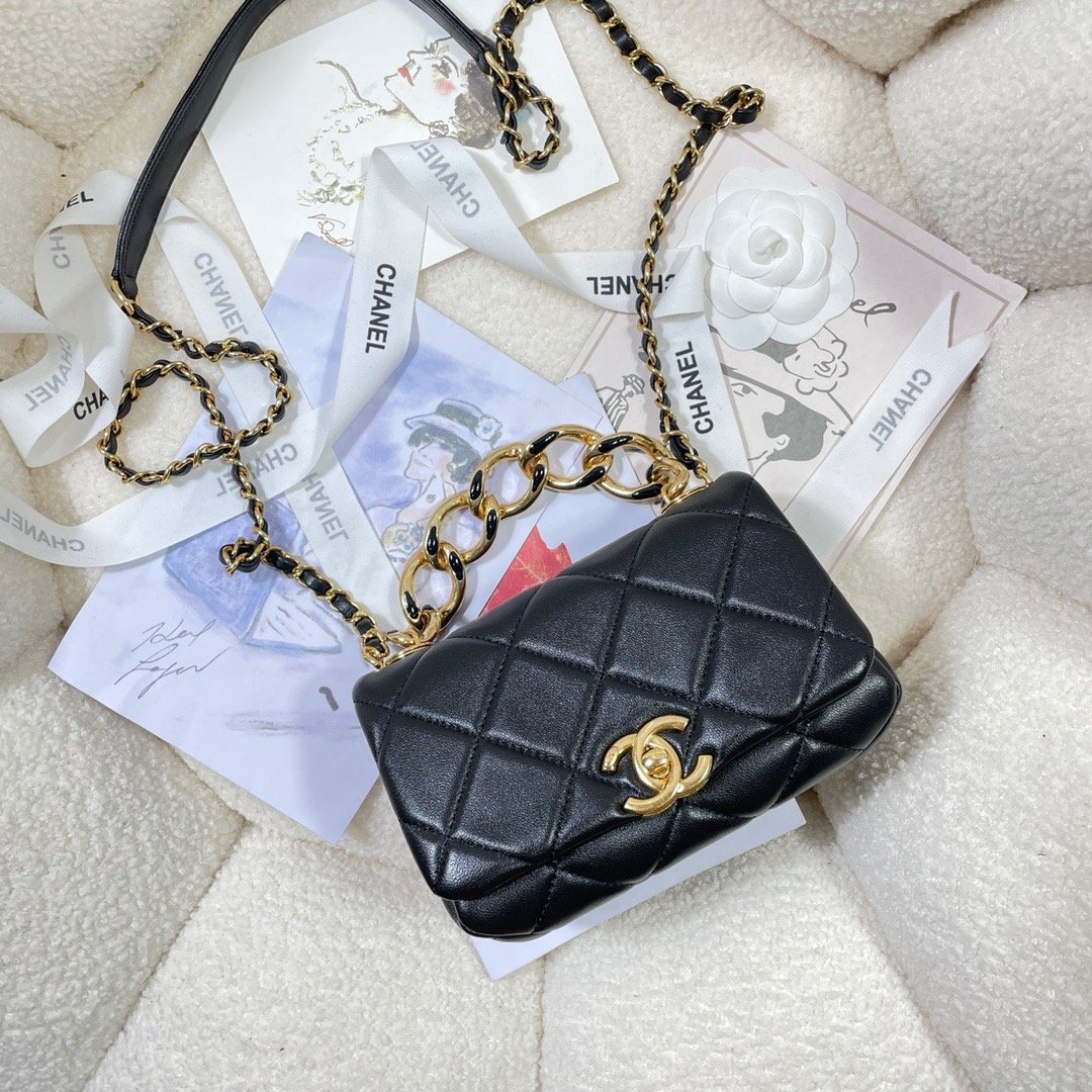 CHLMini Flap Bag Gold Hardware Black For Womtlm, Womtlm’s Handbags, Shoulder Bags 6.7in/17cm AS3365