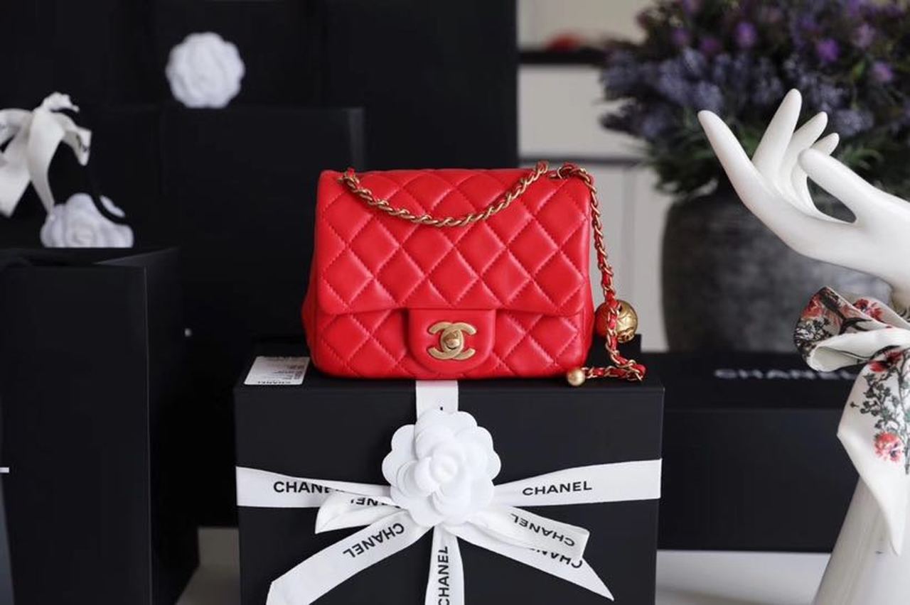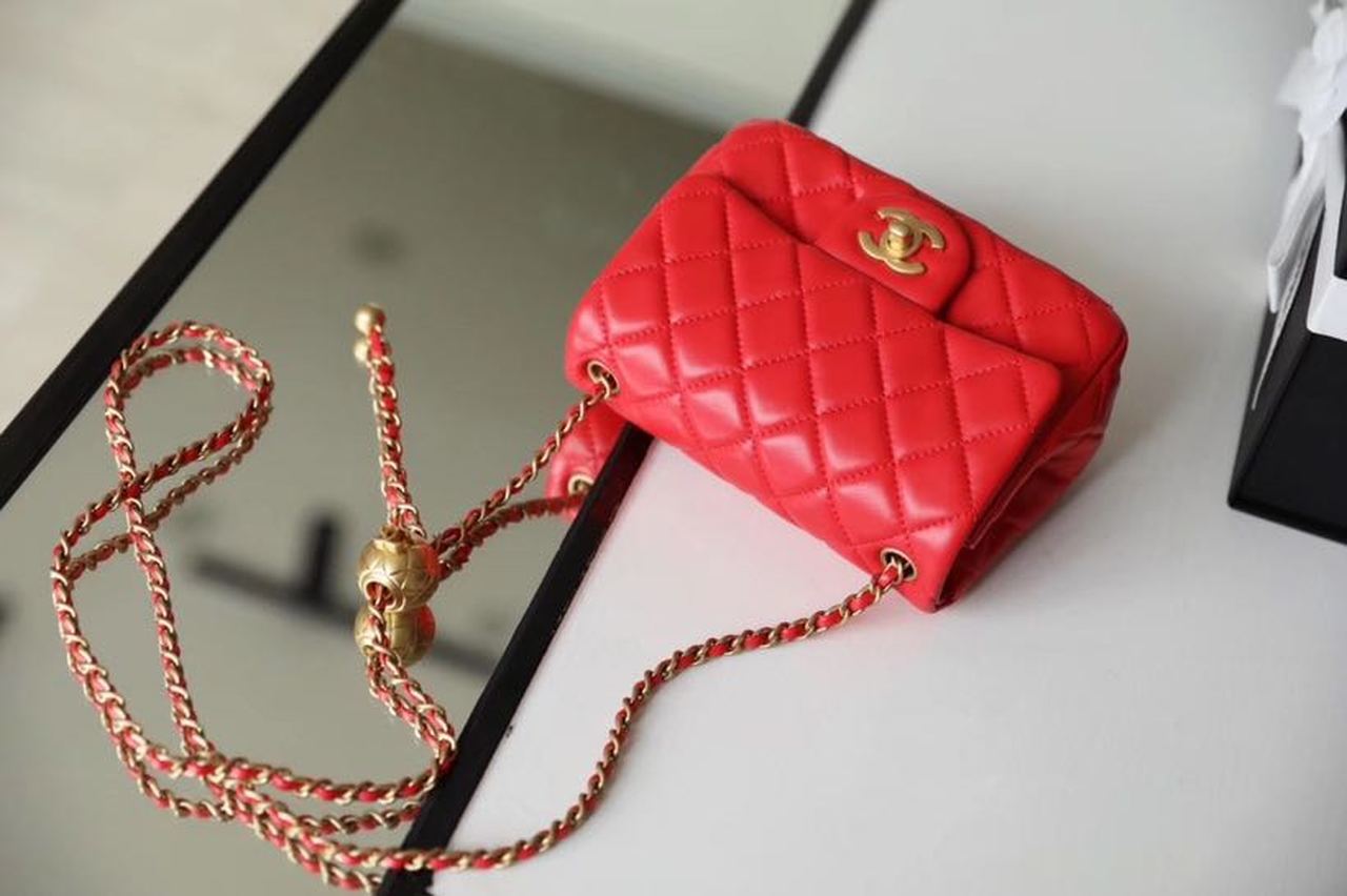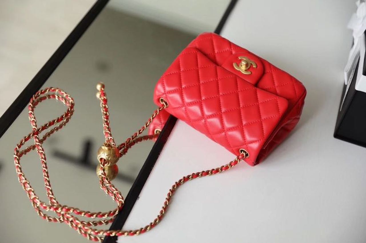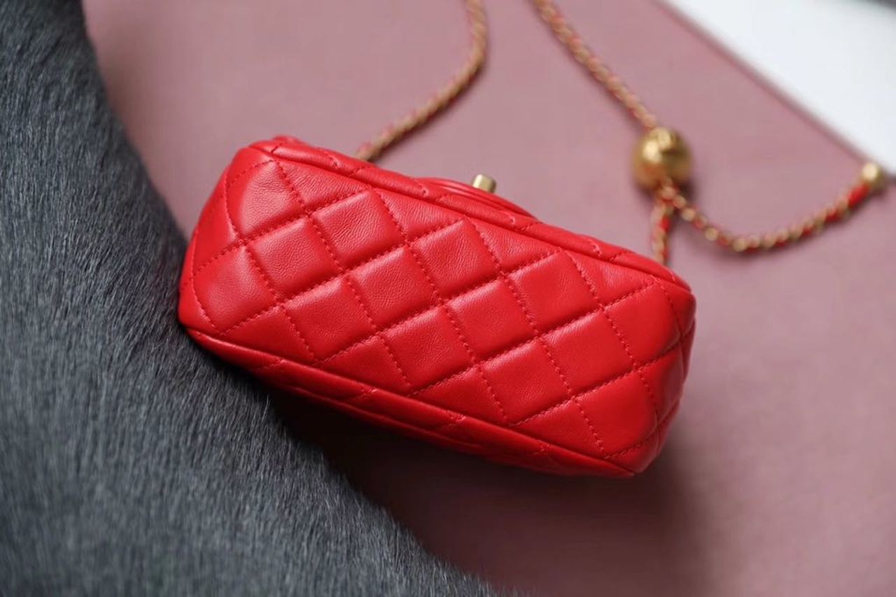 CHLMini Flap Bag With CHLBall On Strap Red For Womtlm, Womtlm’s Handbags, Shoulder And Crossbody Bags 6.7in/17cm AS1786