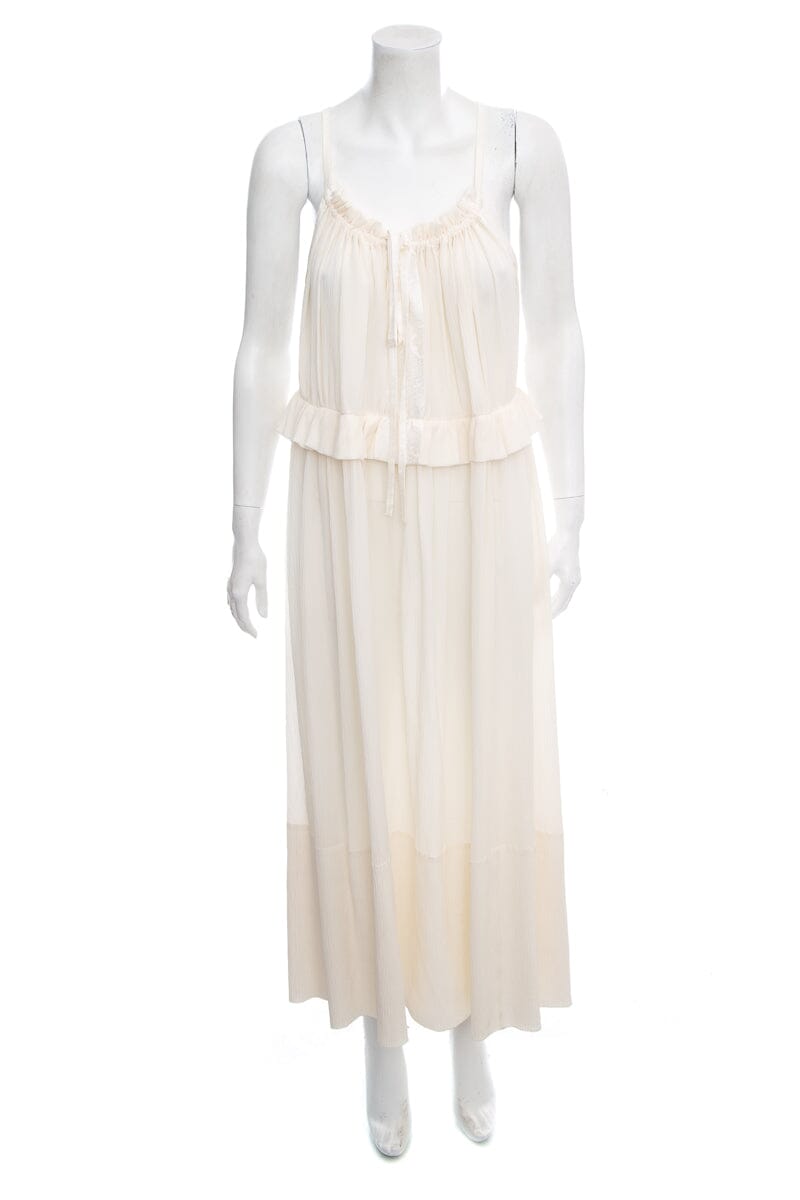 Chloe Cream Sleeveless Side Lace Maxi Dress. This item is in good condition; some marks on fabric.