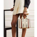 Experience effortless luxury with the Chloé Mini Tote Women Bag, crafted in cotton canvas and shiny calfskin with signature Woody ribbon detailing. Designed for both style and functionality, this bag is perfect for everyday use.