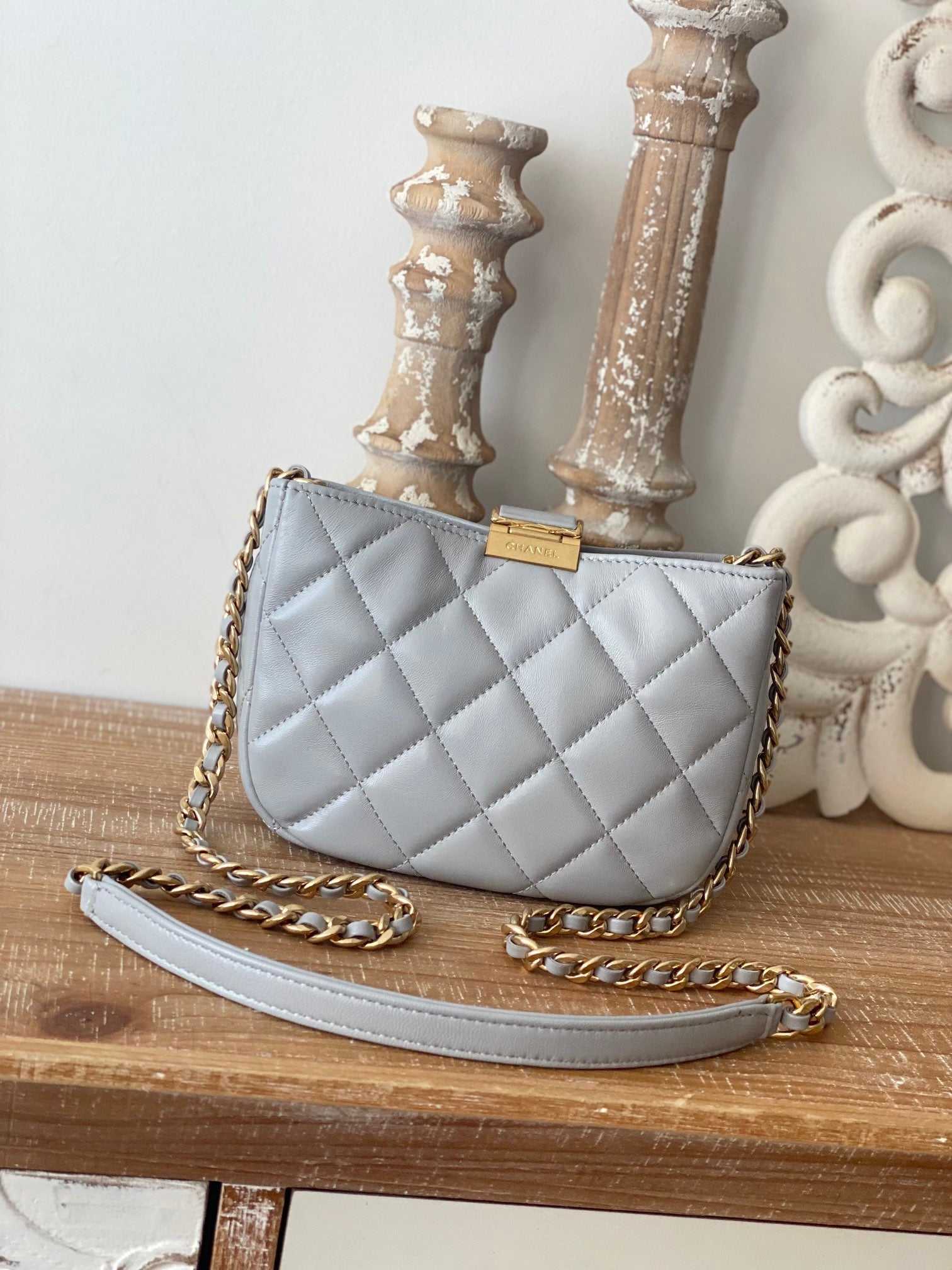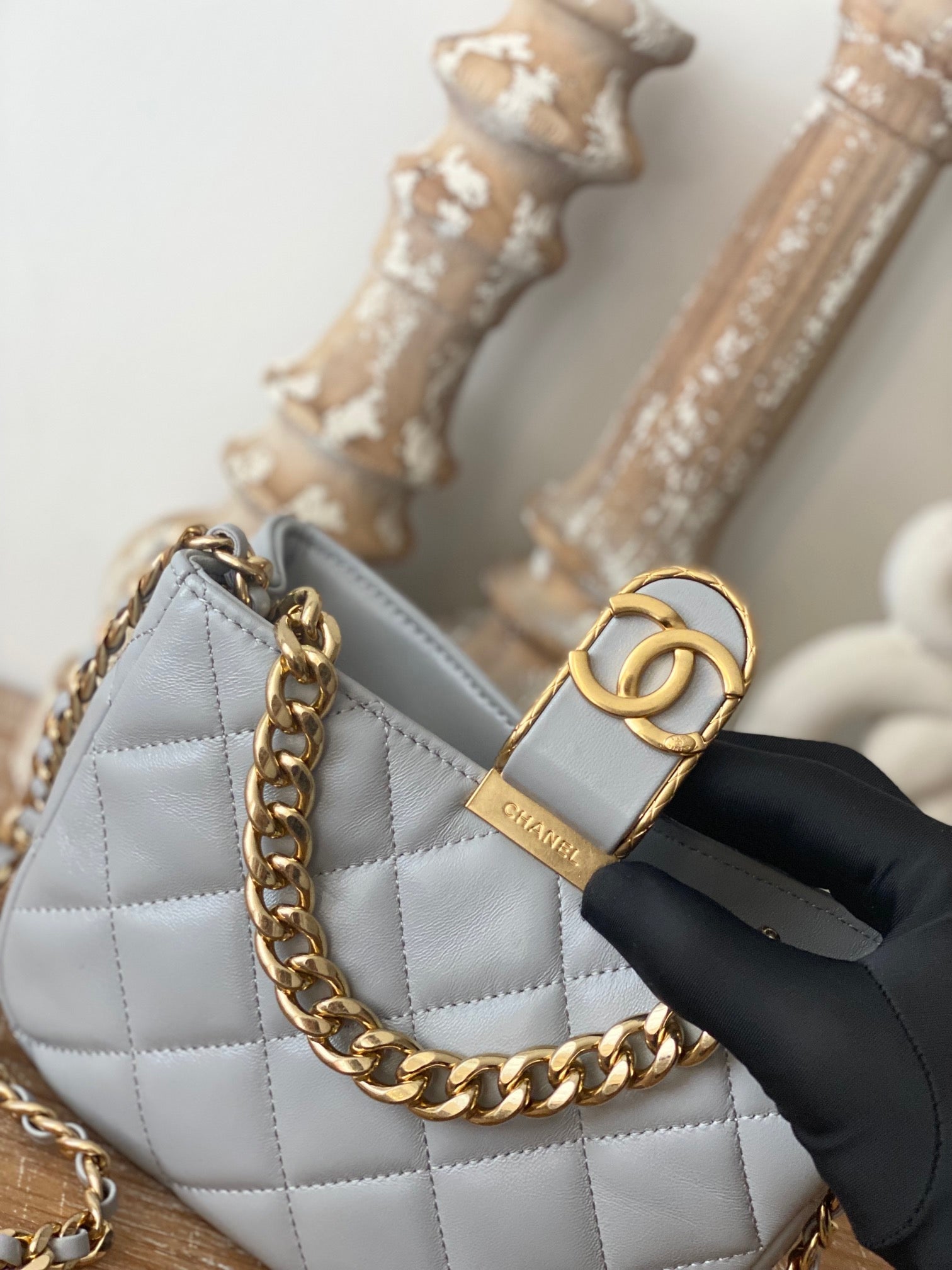 CHLSmall Hobo Bag Gold Hardware Grey For Womtlm, Womtlm’s Handbags, Shoulder Bags 7.5in/19cm