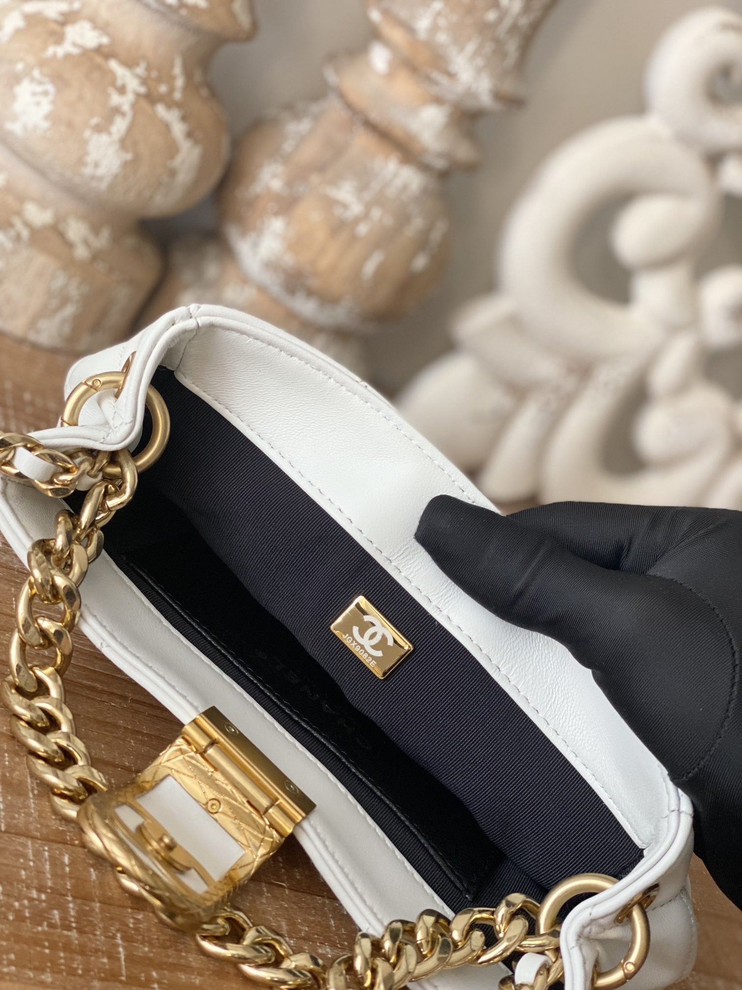 CHLSmall Hobo Bag Gold Hardware White For Womtlm, Womtlm’s Handbags, Shoulder Bags 7.5in/19cm