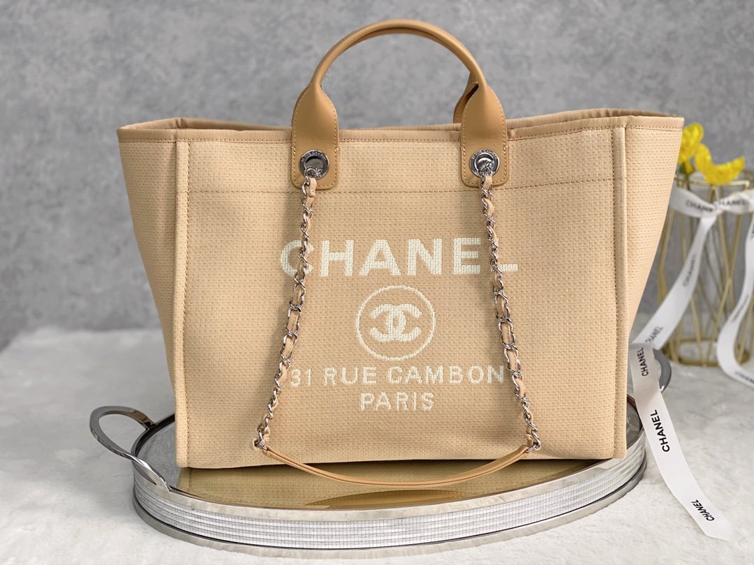 CHLSmall Shopping Bag Silver Hardware Raffia For Womtlm, Womtlm’s Handbags, Shoulder Bags 15.2in/39cm AS3257