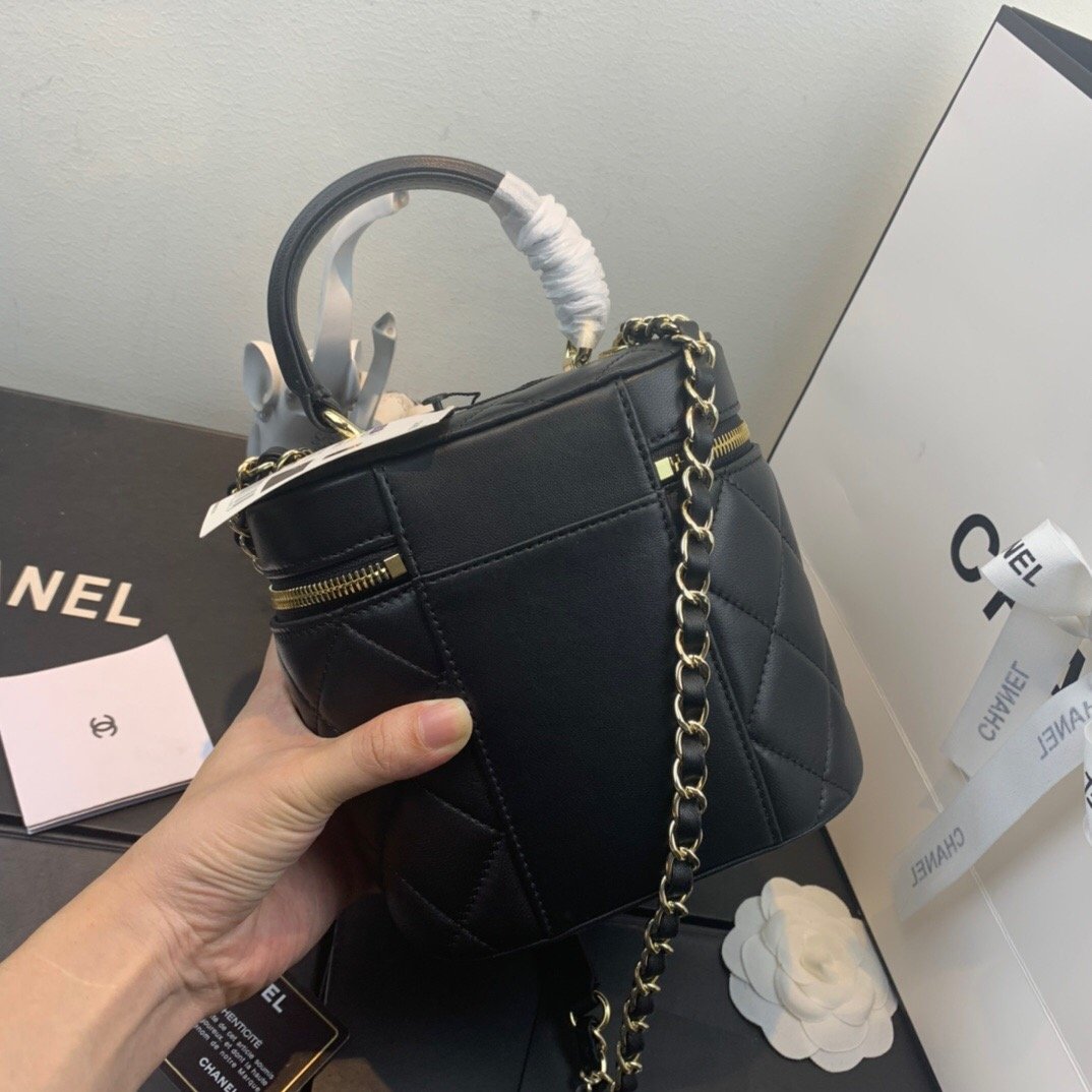 CHLVanity Case Gold Hardware Black For Womtlm, Womtlm’s Handbags, Shoulder Bags 7.9in/20cm AS2061