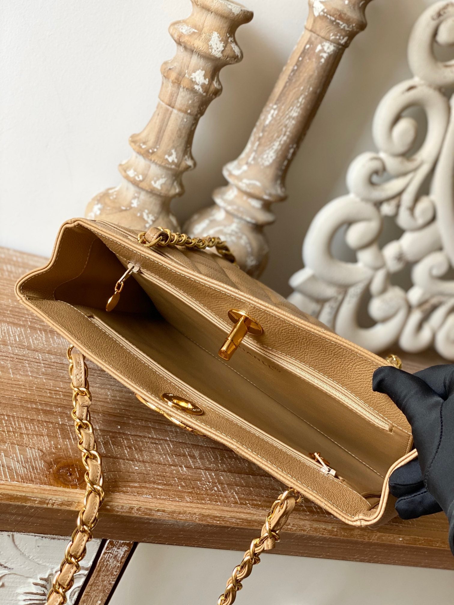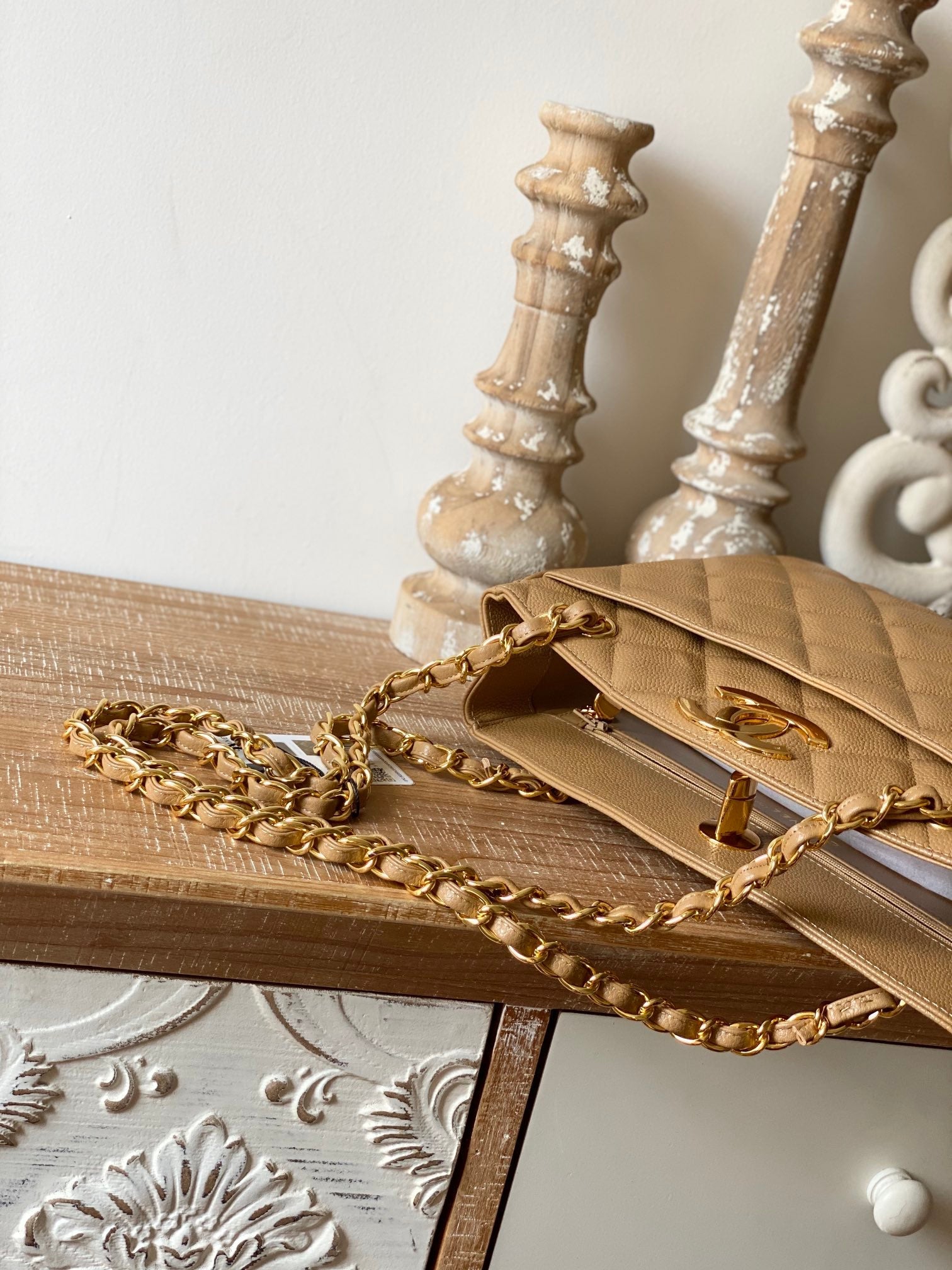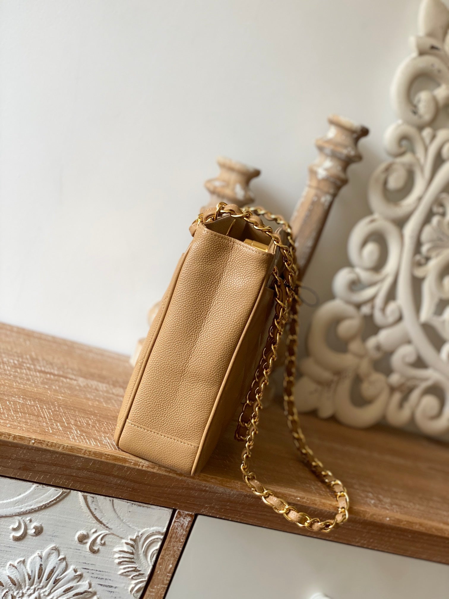 CHLVintage Beige Medium Quilted Caviar Tote Bag For Womtlm 28cm/11in