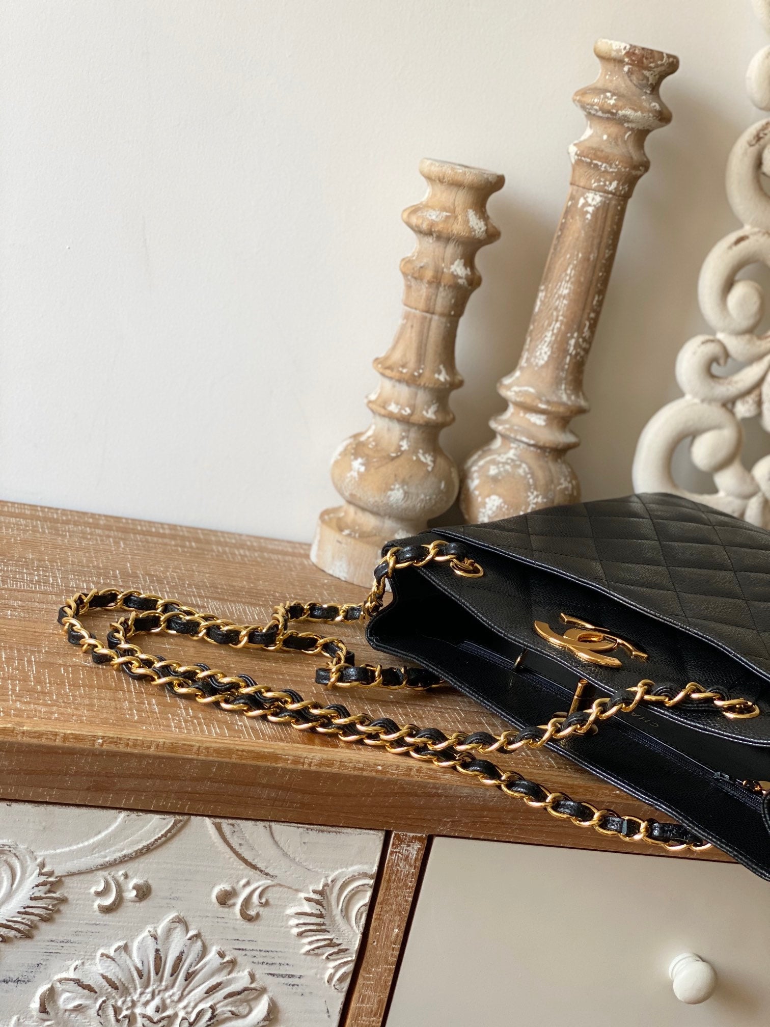 CHLVintage Black Large Quilted Caviar Tote Bag For Womtlm 28cm/11in