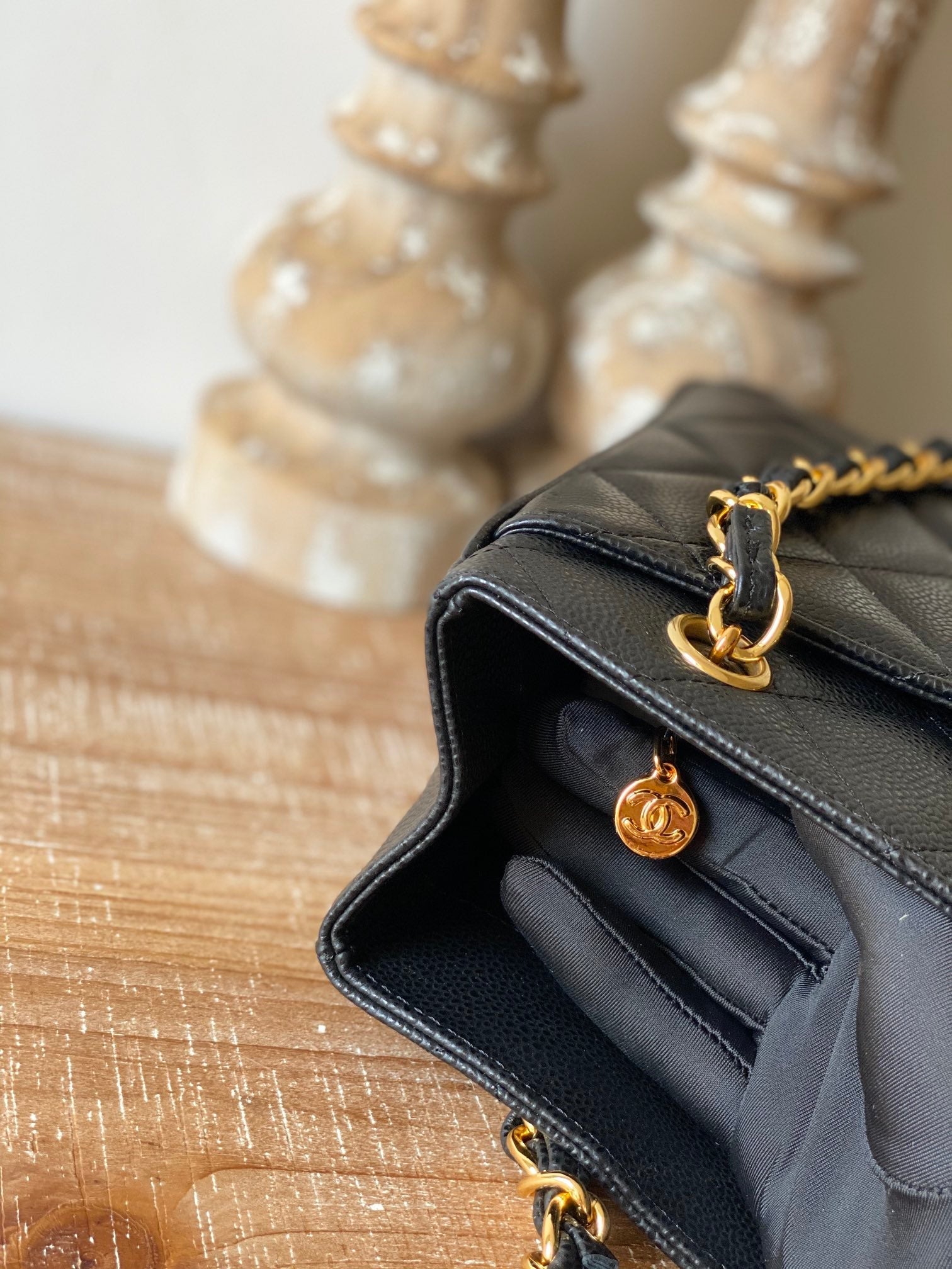 CC Vintage Black Large Quilted Caviar Tote Bag For Womtlm 28cm/11in