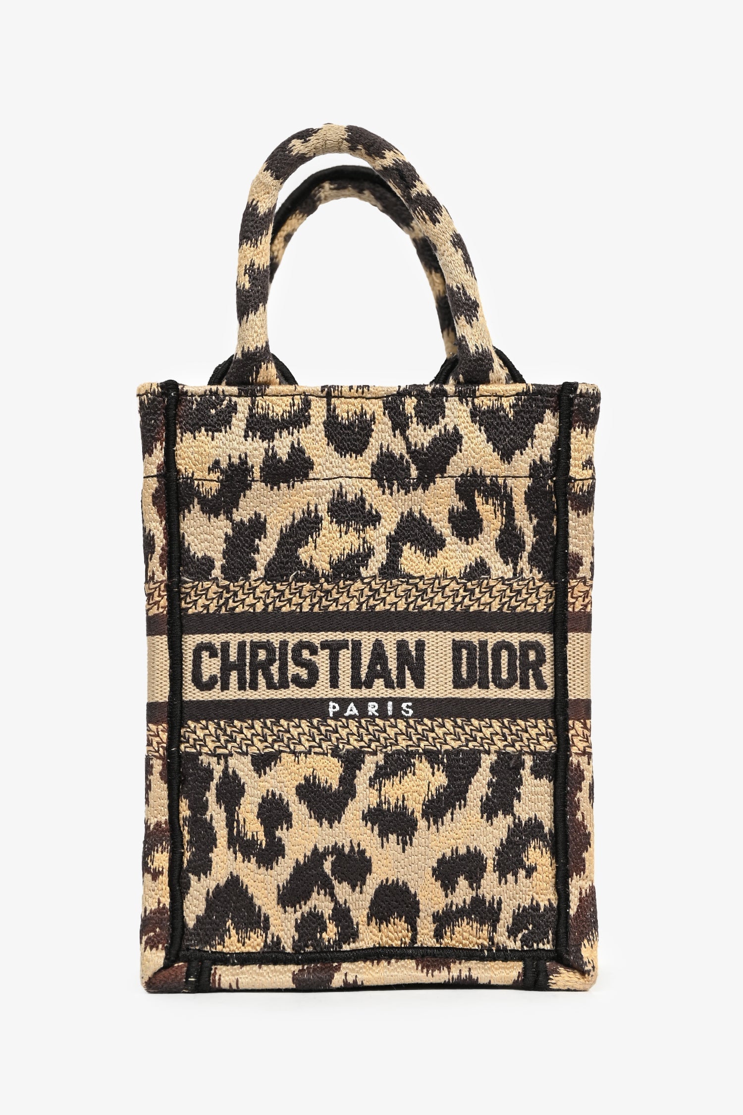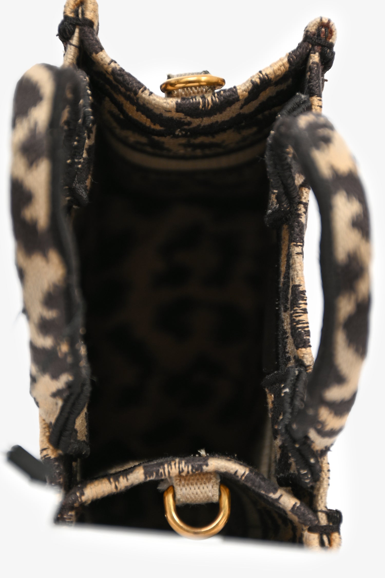 Christian Dior Beige Leopard Canvas Mini Book Tote Phone Bag