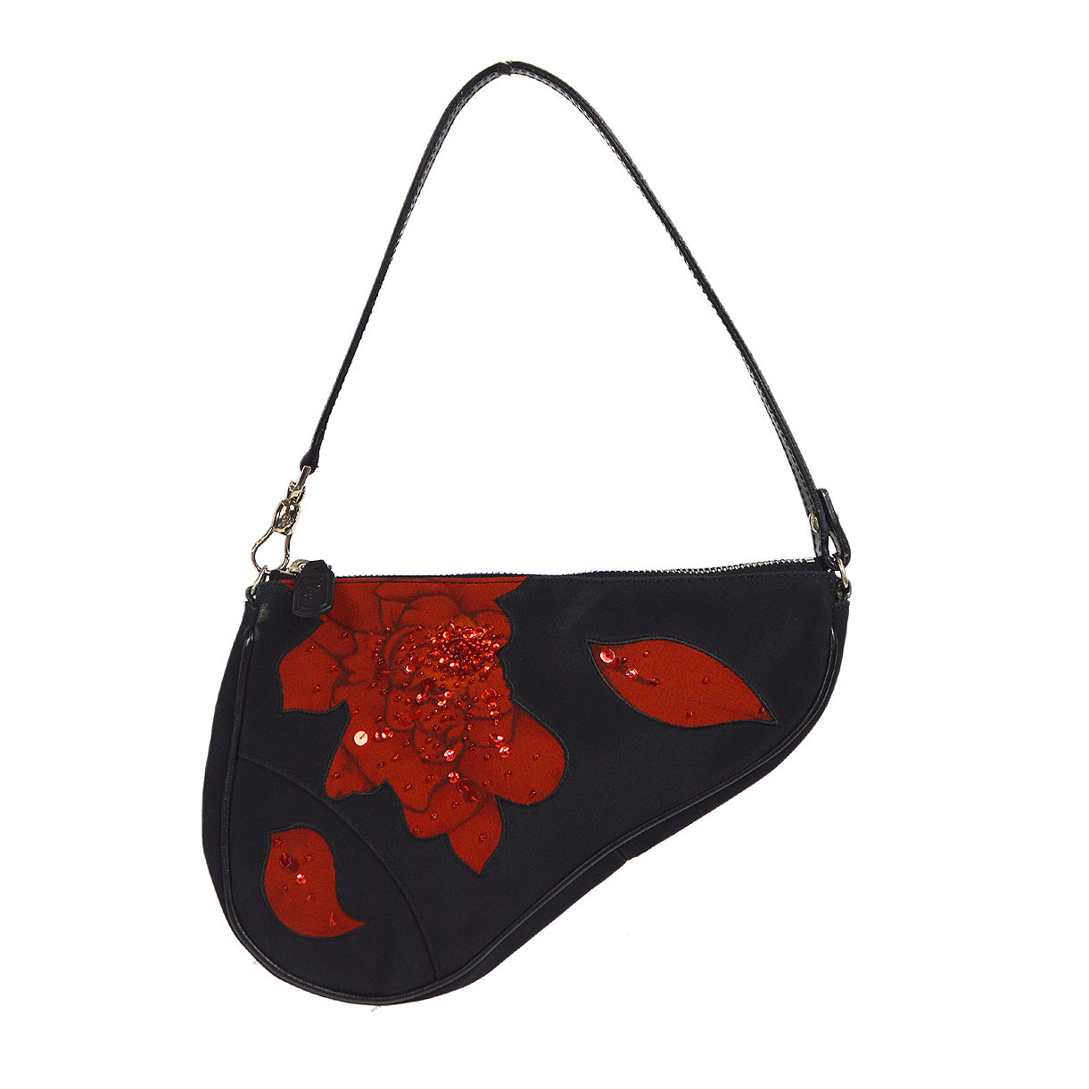 CHRISTIAN DIOR 2002 Beaded Rose Saddle Bag Mini 88466