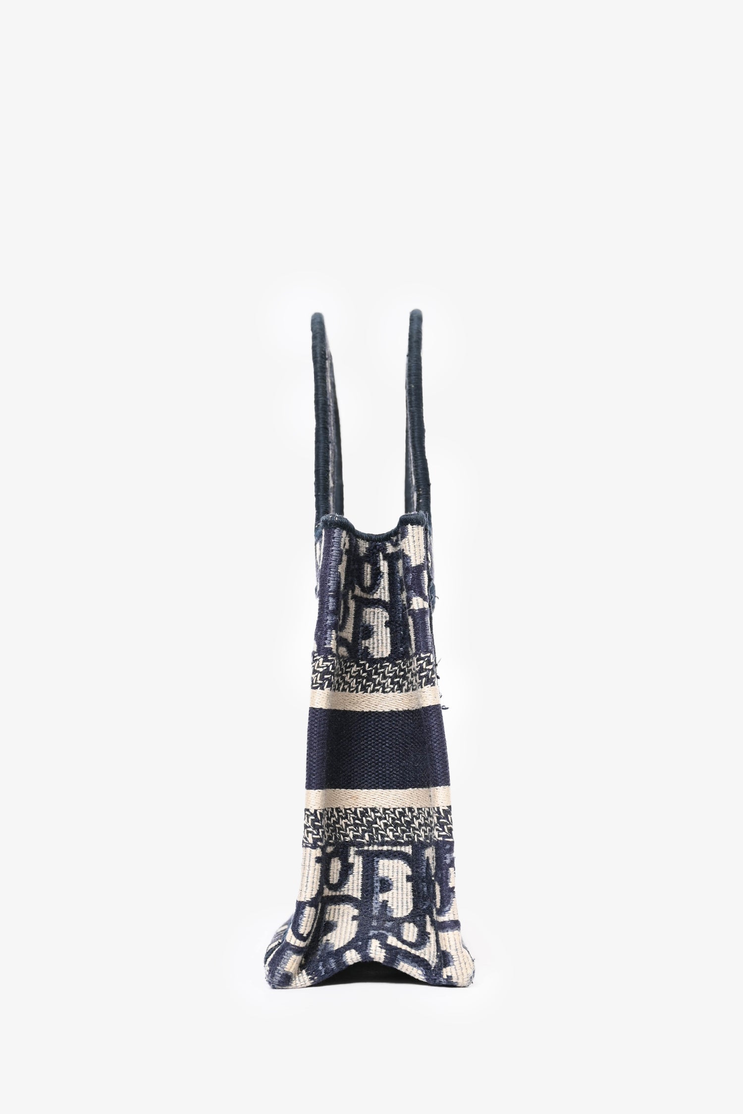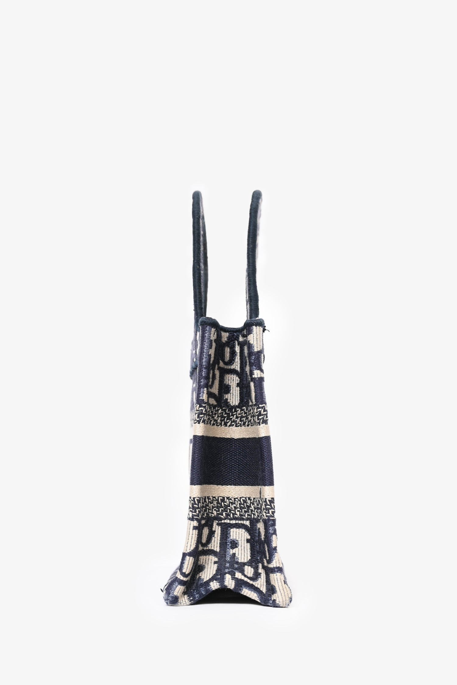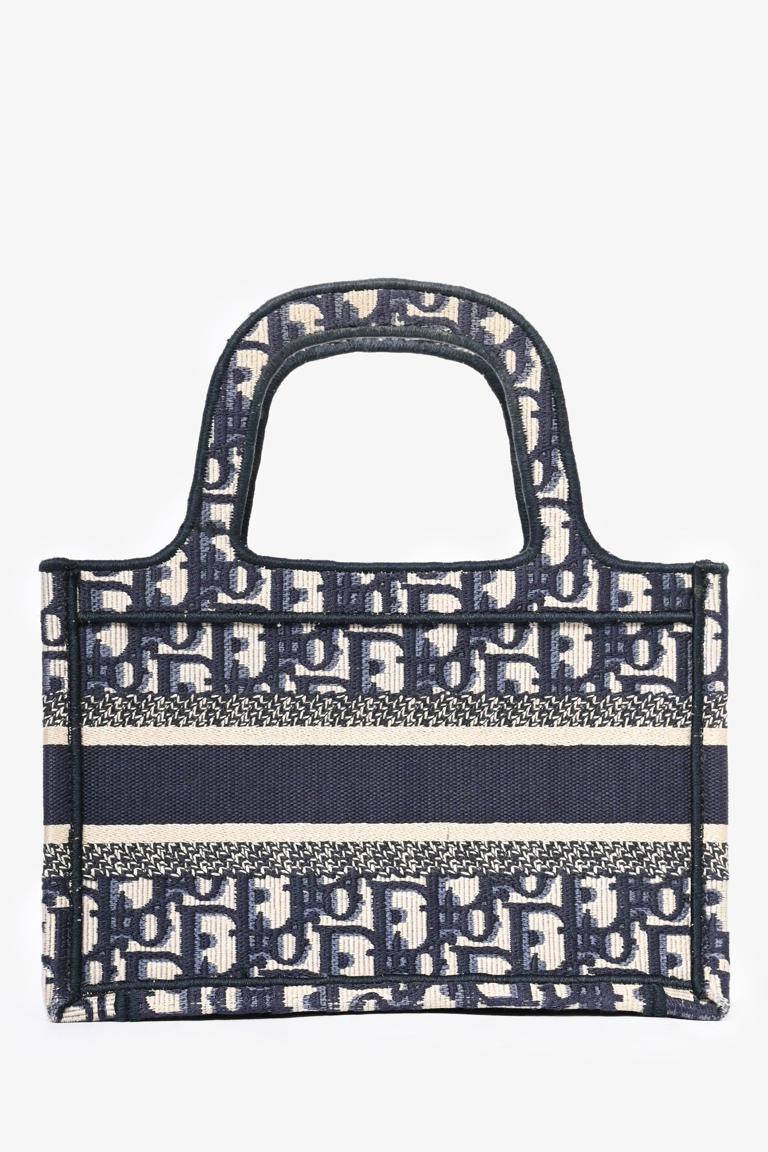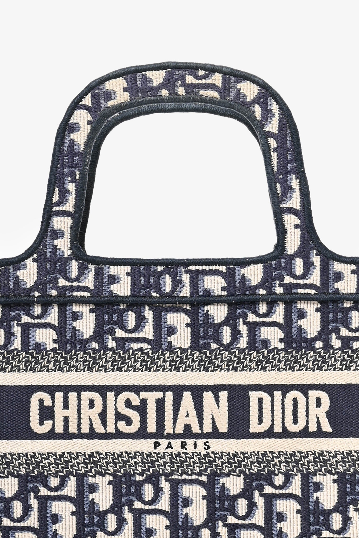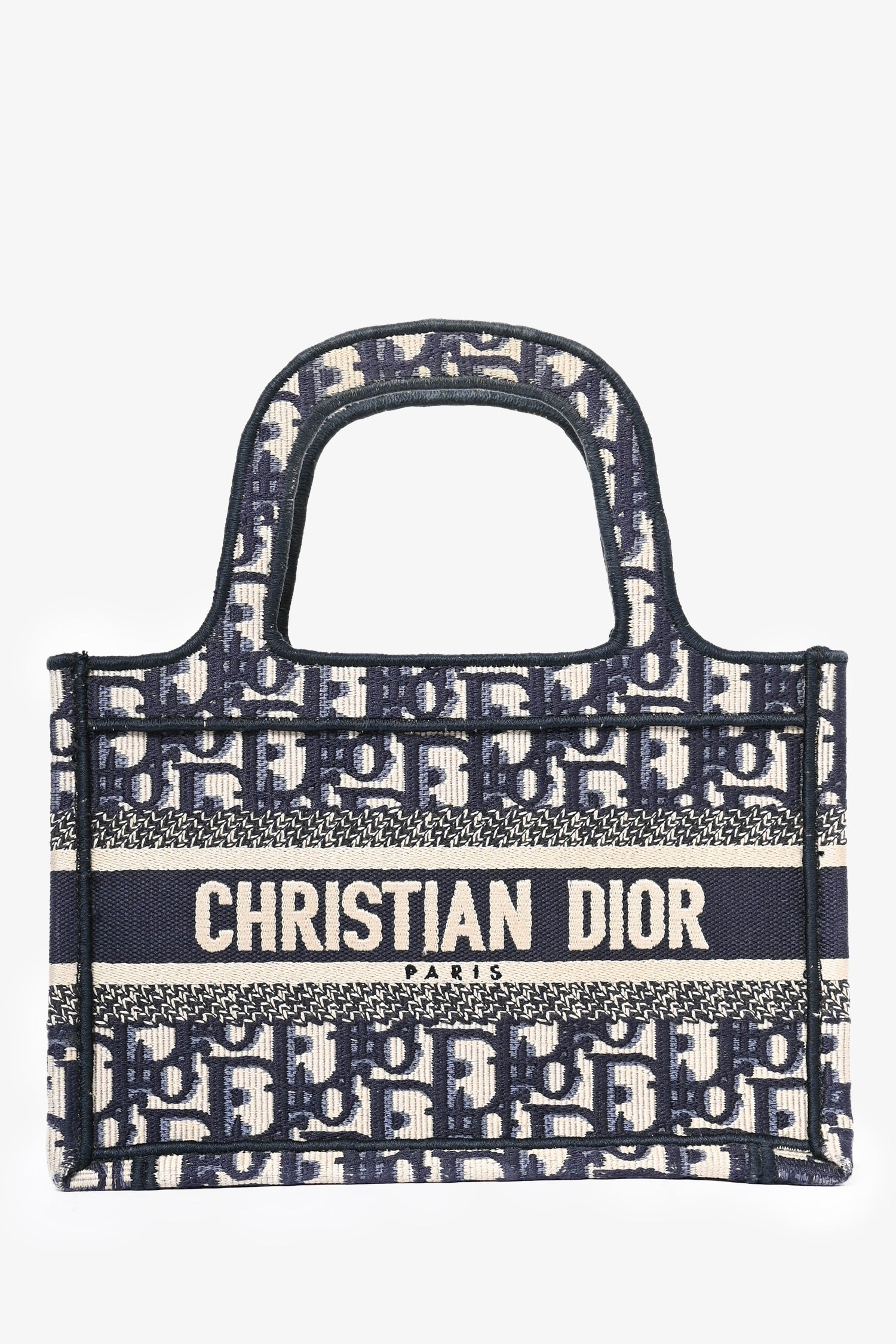 Christian Dior 2020 Blue Oblique Mini Book Tote. Open-top design with structured silhouette. Dual top handles. Embroidered "Christian Dior Paris" logo on the front. Tonal stitching.