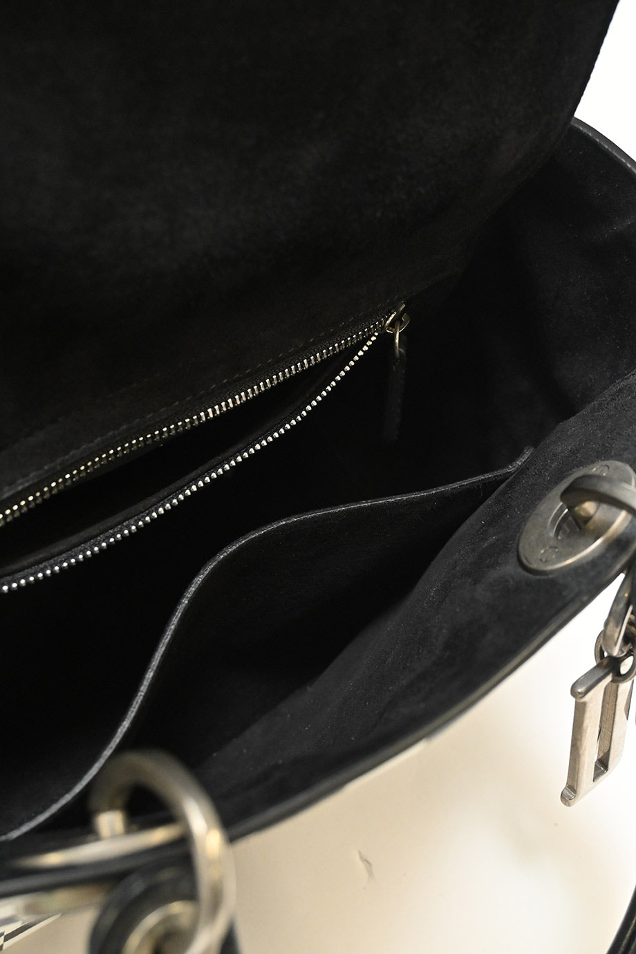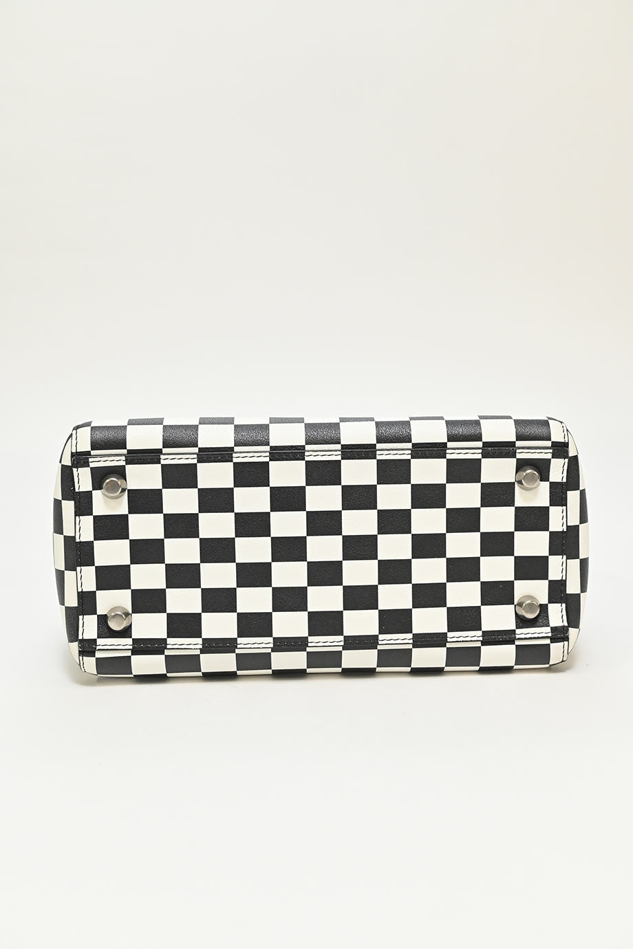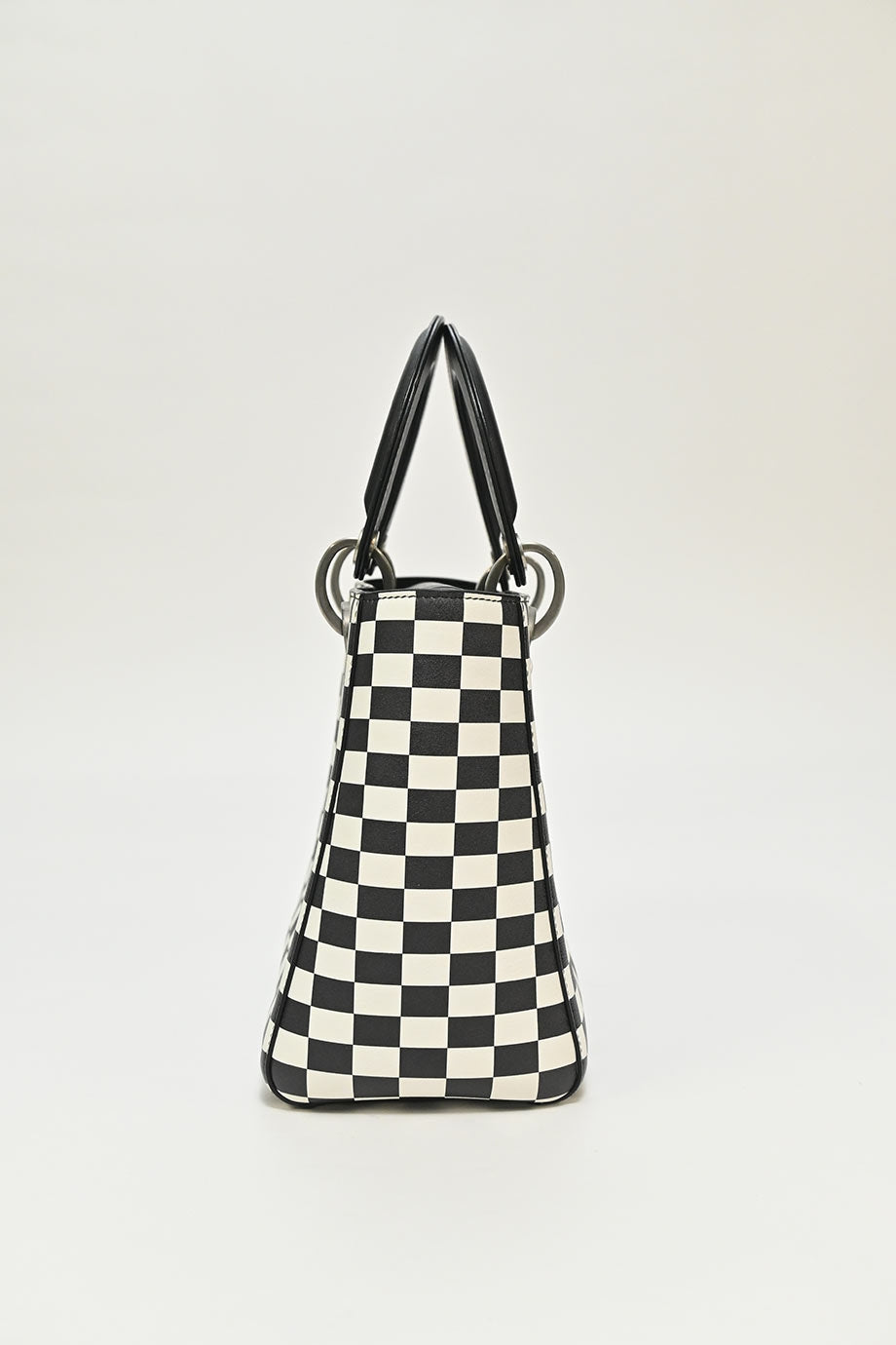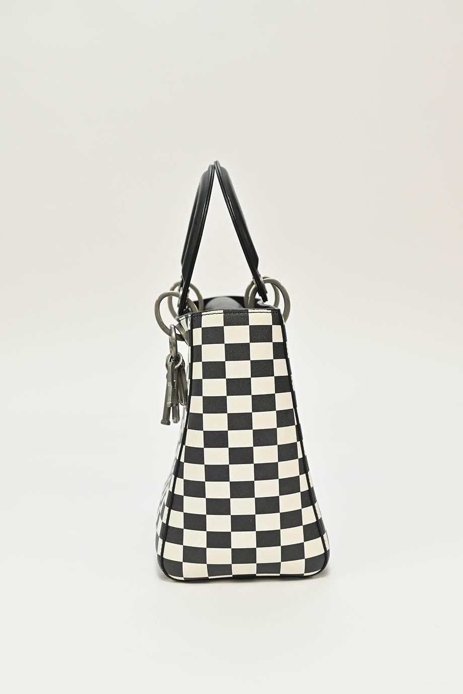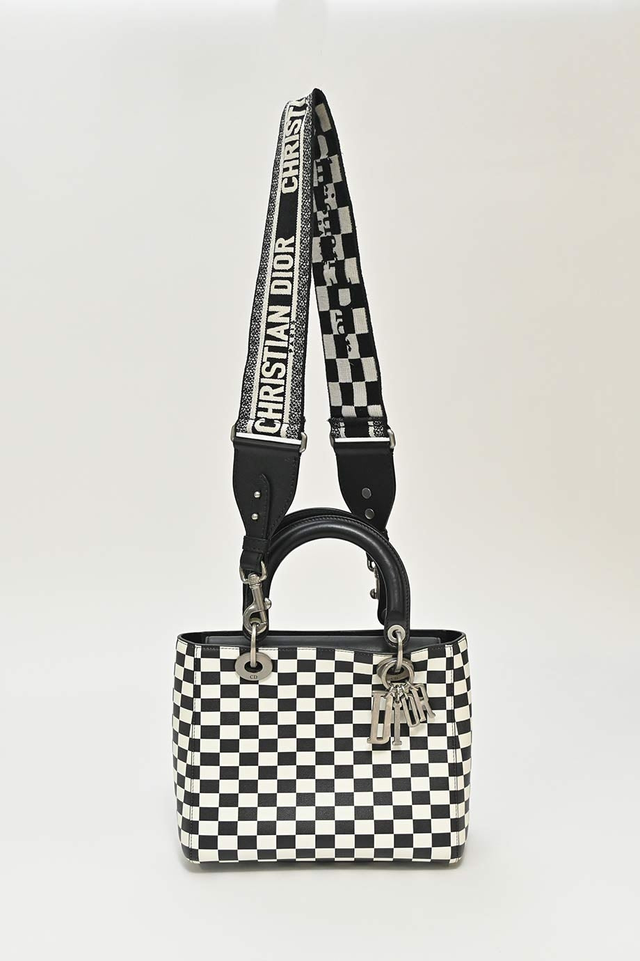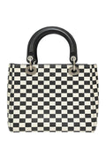 CHRISTIAN DIOR Black two-tone leather check Lady Dior top handle bag with detachable shoulder strap