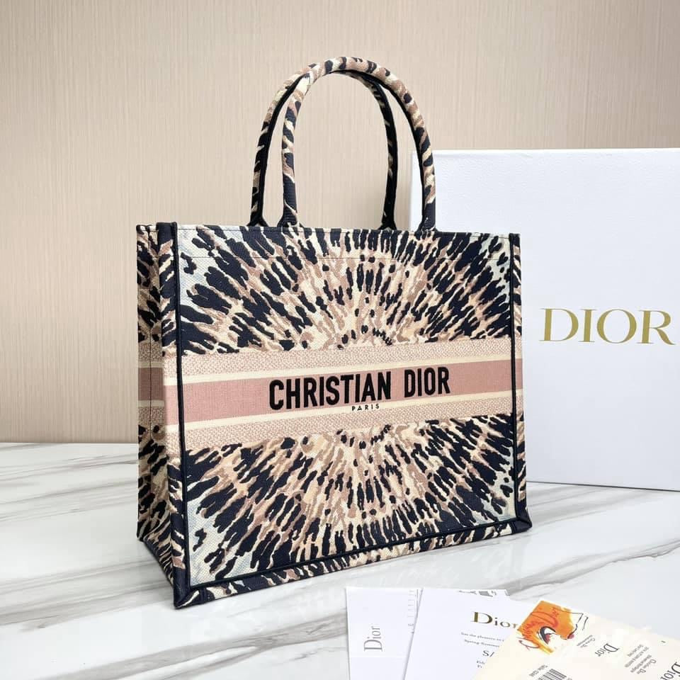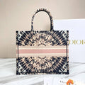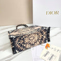 Introduced by Maria Grazia Chiuri, Creative Director of Christian Dior, the Dior Book Tote has become a staple of the Dior aesthetic. Designed to hold all the daily essentials, the black style is fully embroidered with a white Dior Around the World motif, further embellished with a play on shiny and matte thread. The design is adorned with the 'CHRISTIAN DIOR' signature on the front and exemplifies the House's signature savoir-faire. The tote may be carried by hand or over the shoulder.
