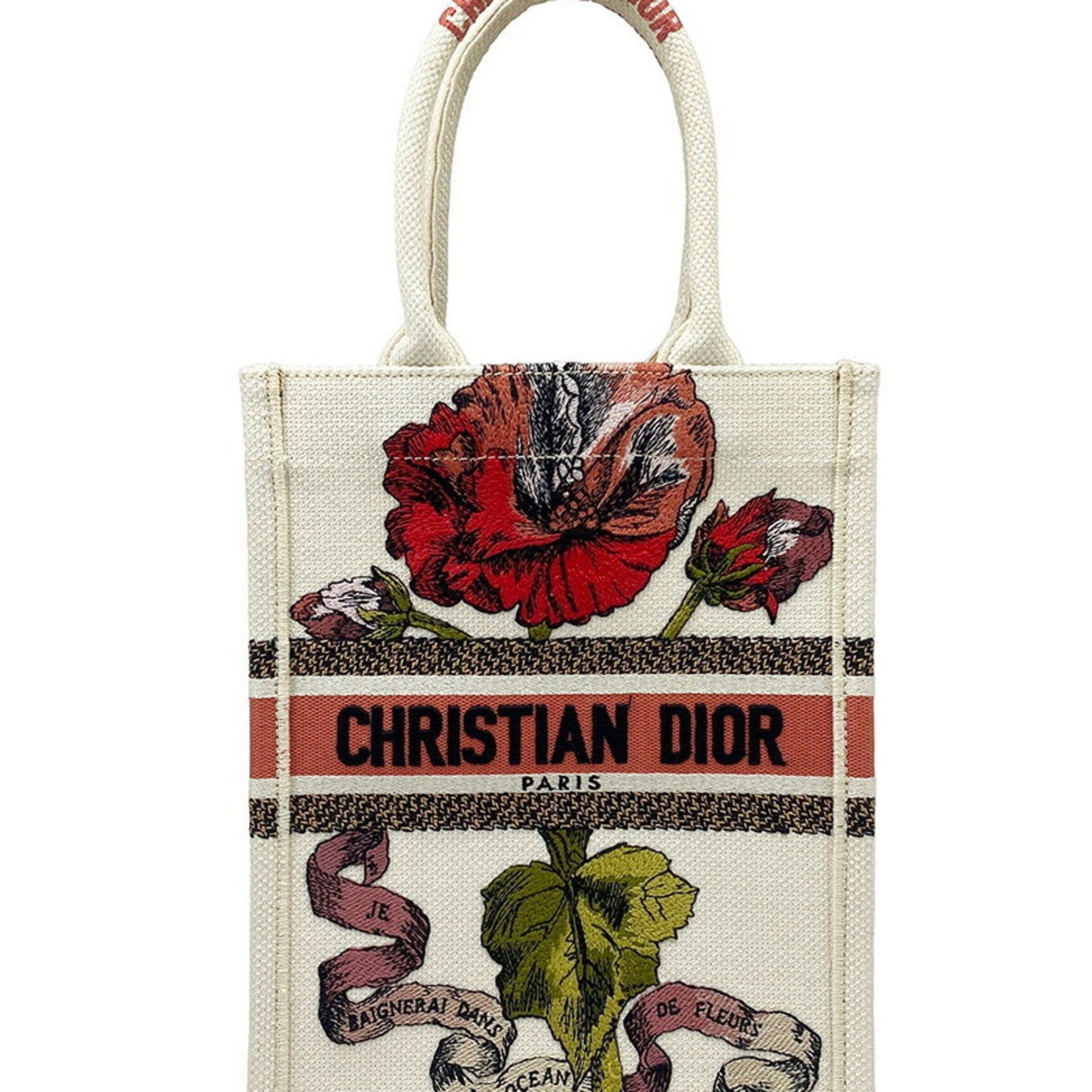 Christian Dior Book Tote Small Vertical Canvas Flower Multicolor Beige Bag
