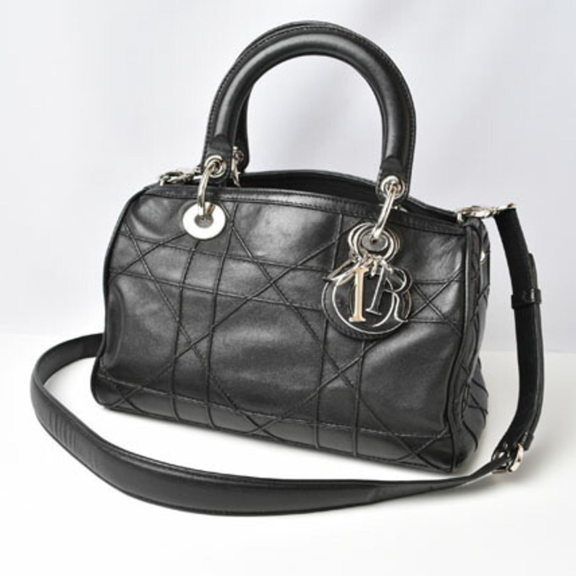 Christian Dior Boston Bag Shoulder Lady Canage Lambskin Black