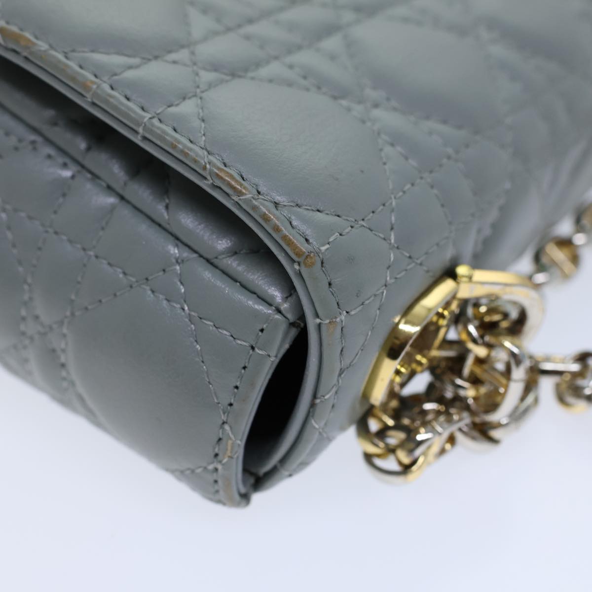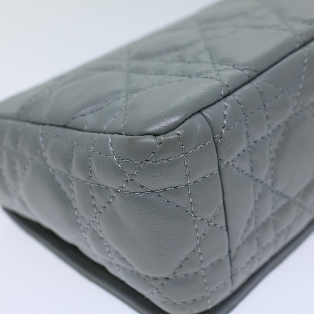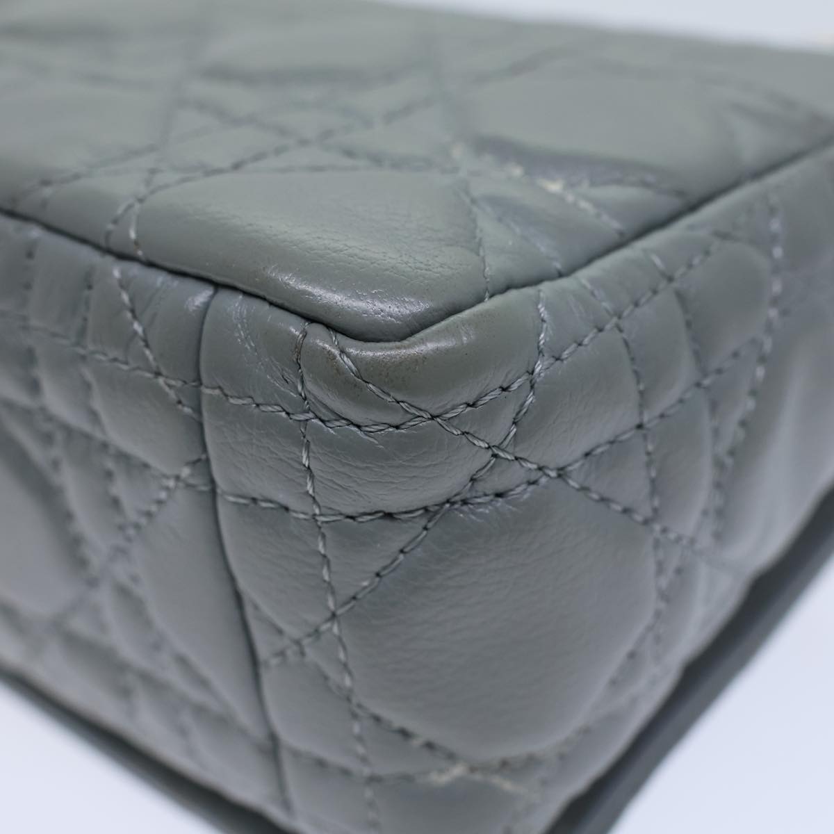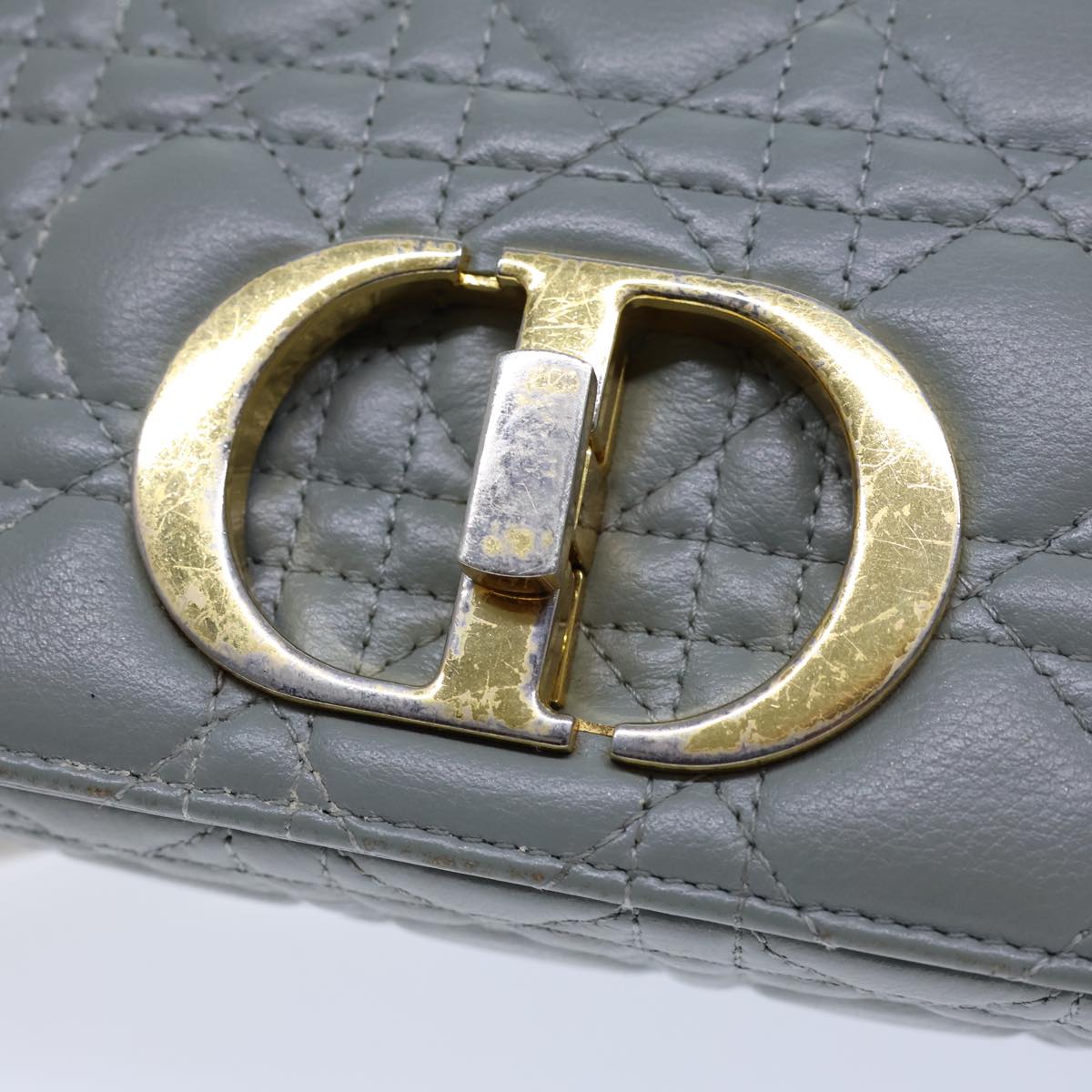 CHRISTIAN DIOR Canage Caro Shoulder Bag Leather Gray Auth 71331A