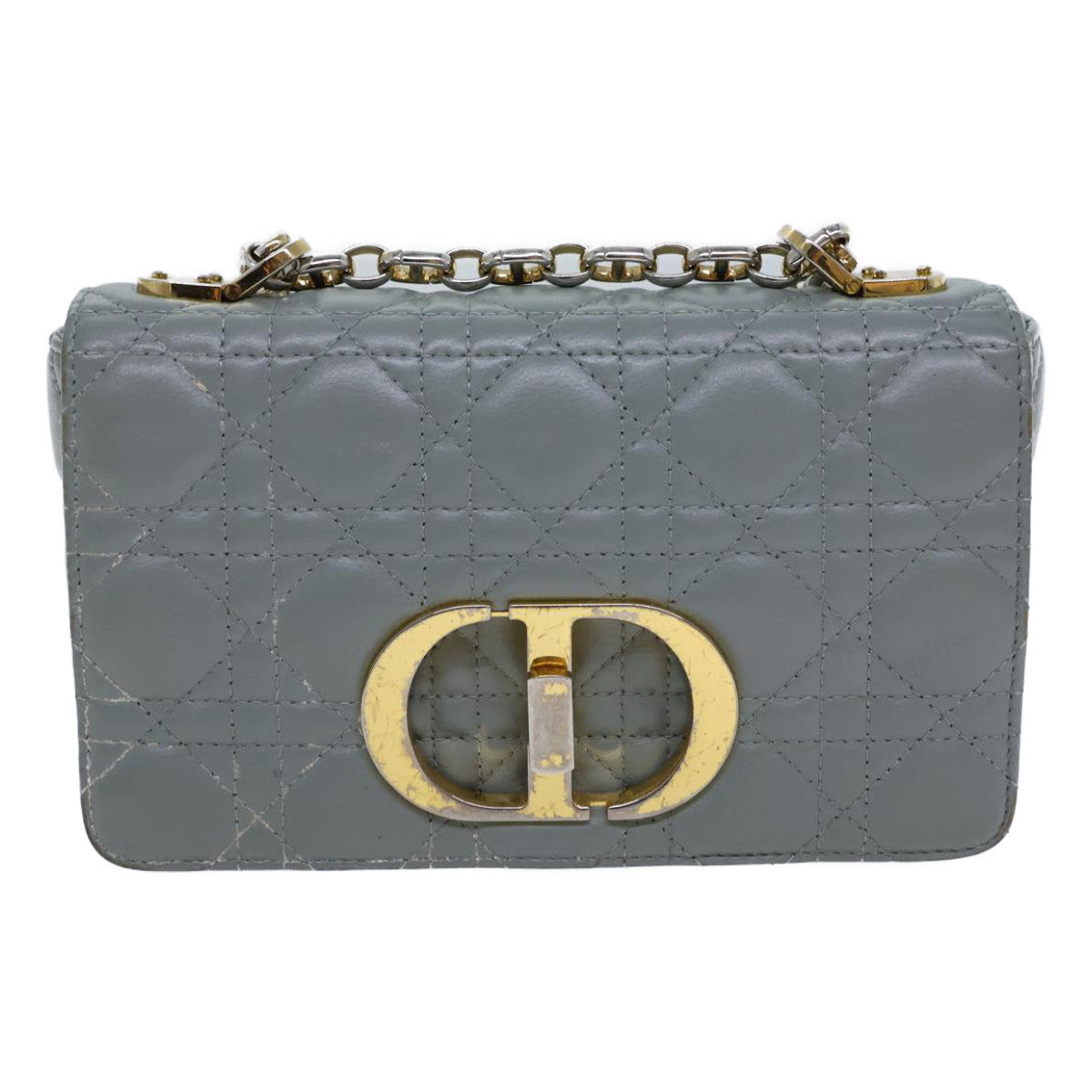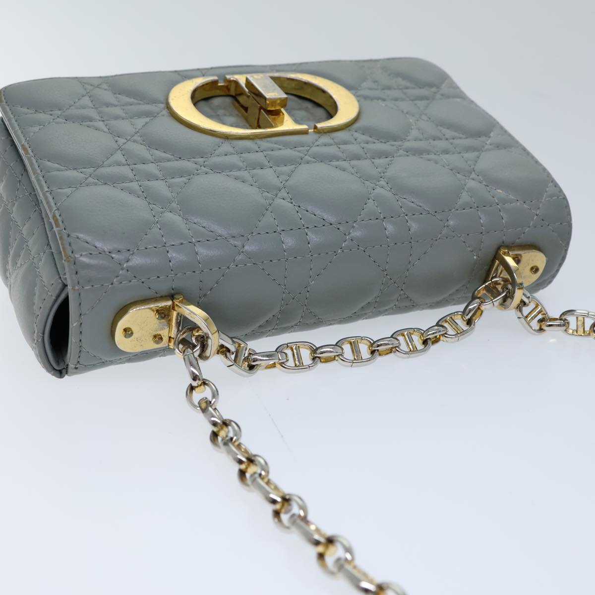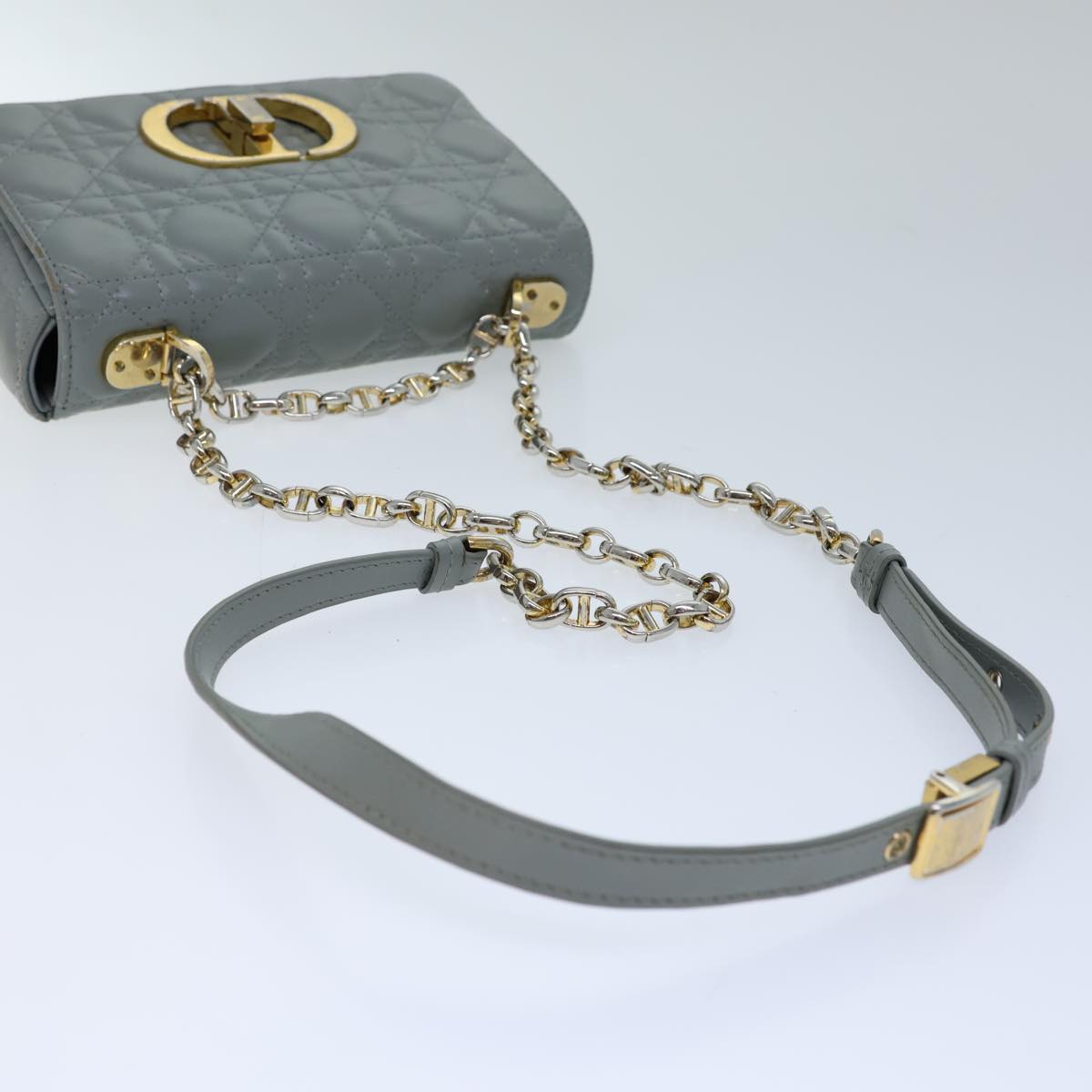 CHRISTIAN DIOR Canage Caro Shoulder Bag Leather Gray Auth 71331A