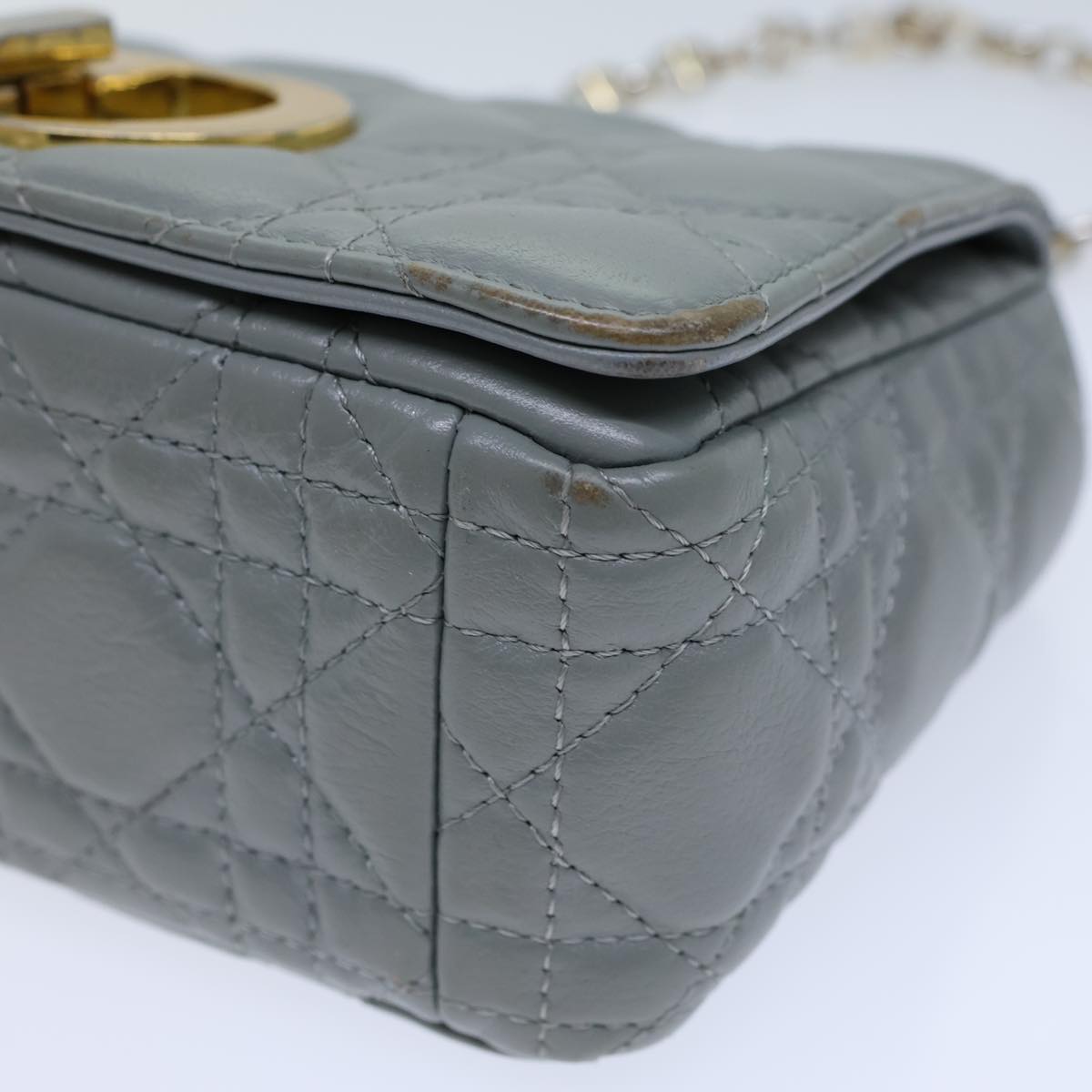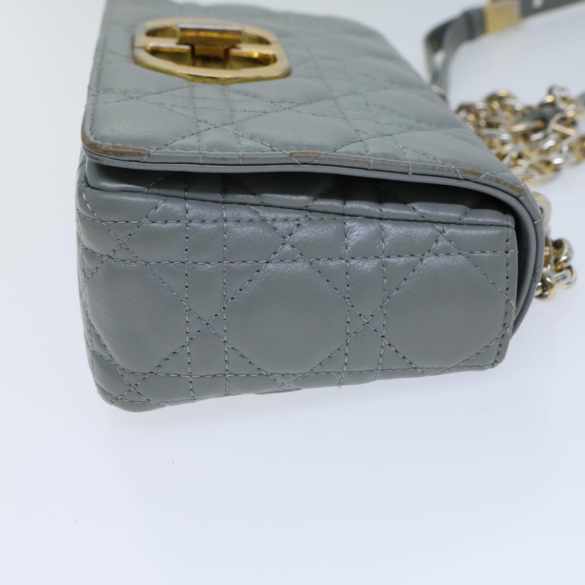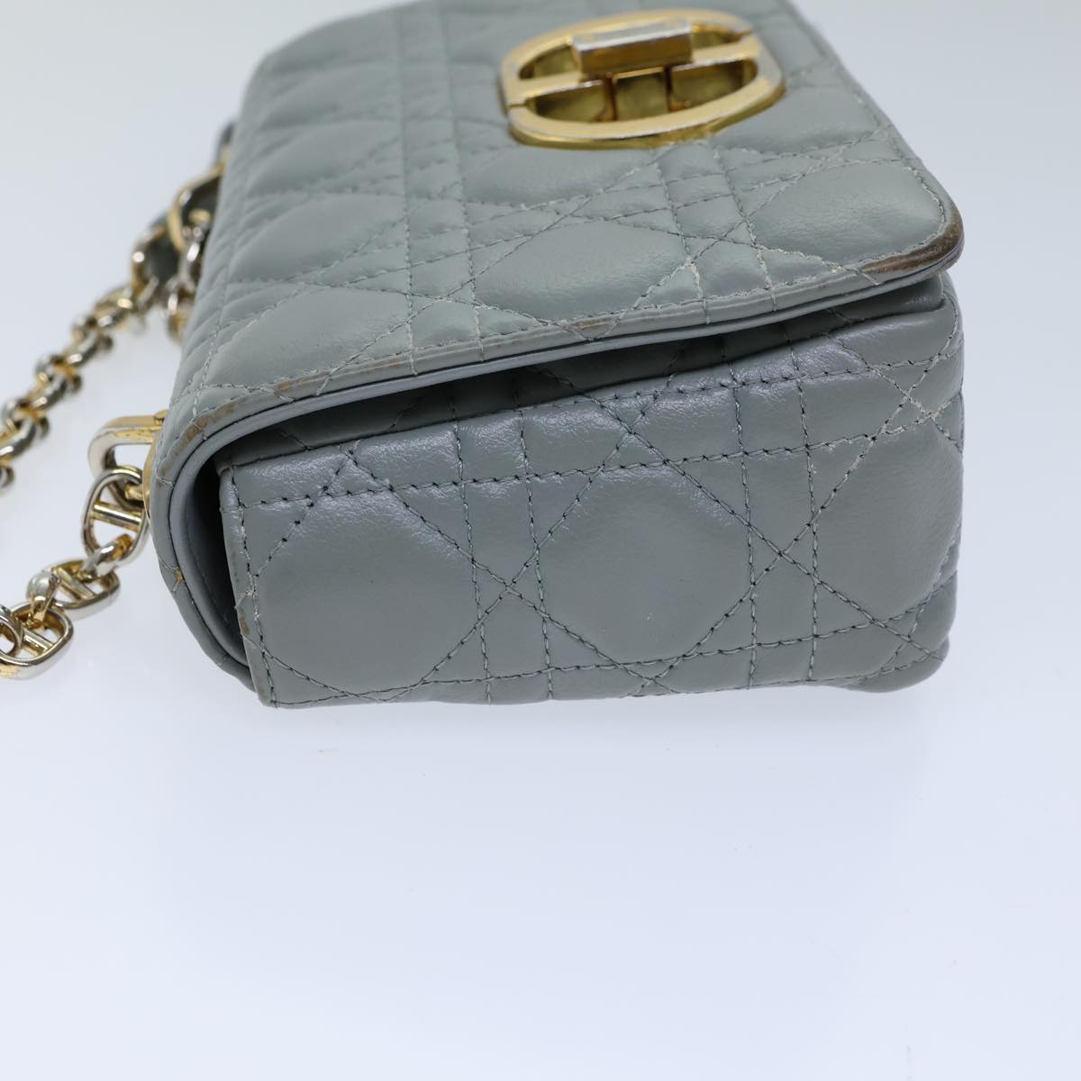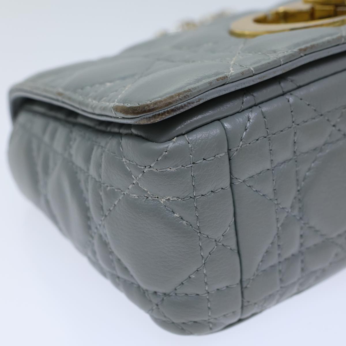 CHRISTIAN DIOR Canage Caro Shoulder Bag Leather Gray Auth 71331A