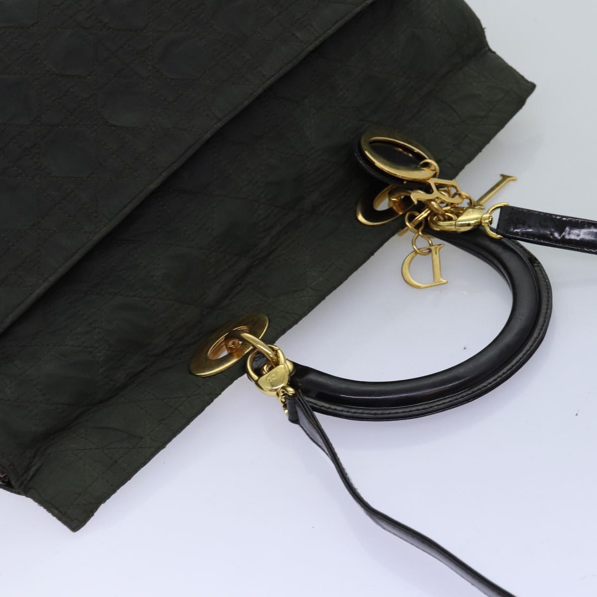 CHRISTIAN DIOR Canage Hand Bag Nylon 2way Khaki Auth 74669
