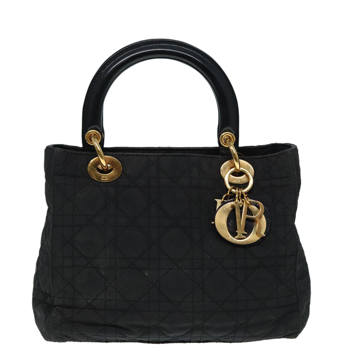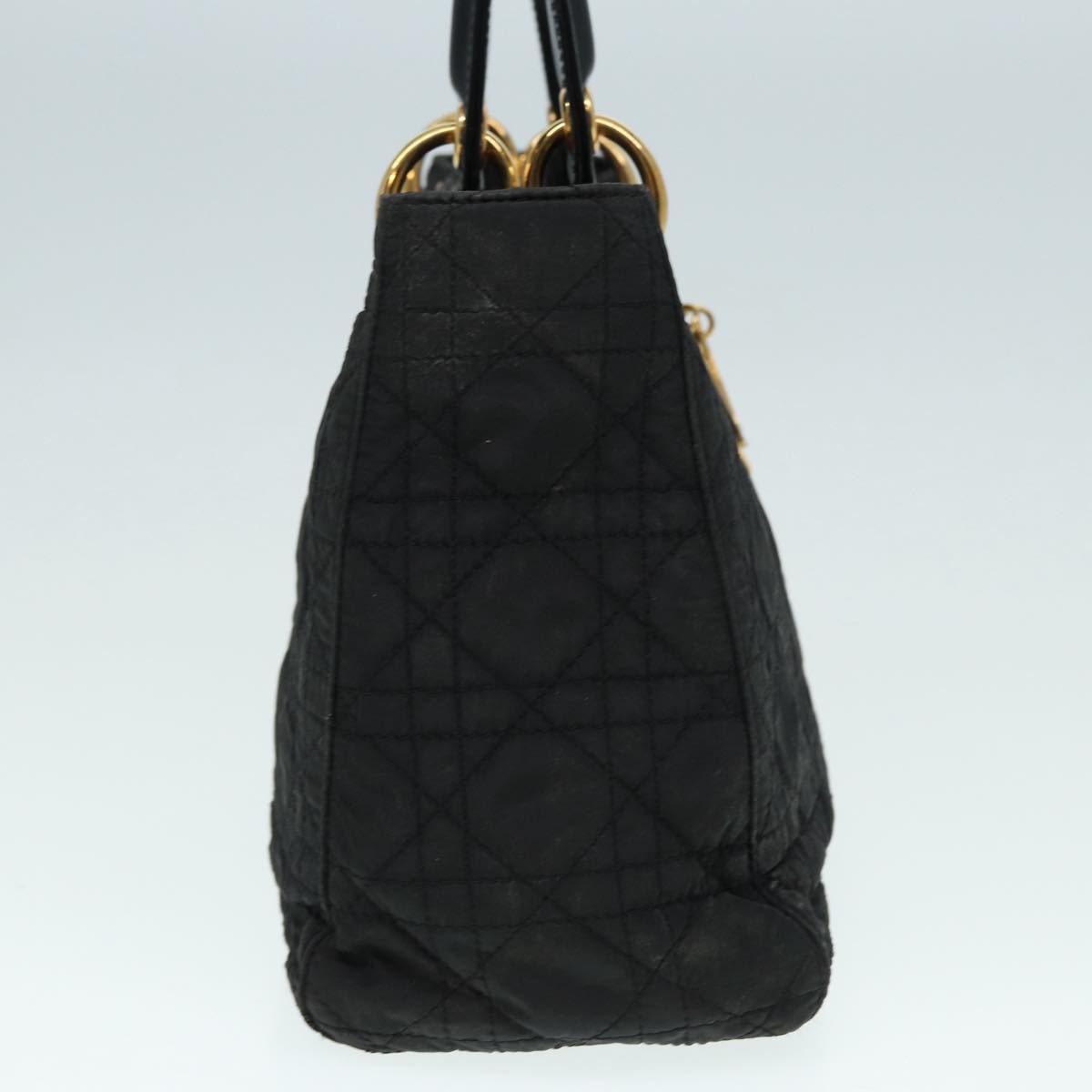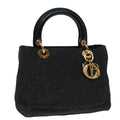 CHRISTIAN DIOR Canage Hand Bag Nylon Black Gold Auth 88600