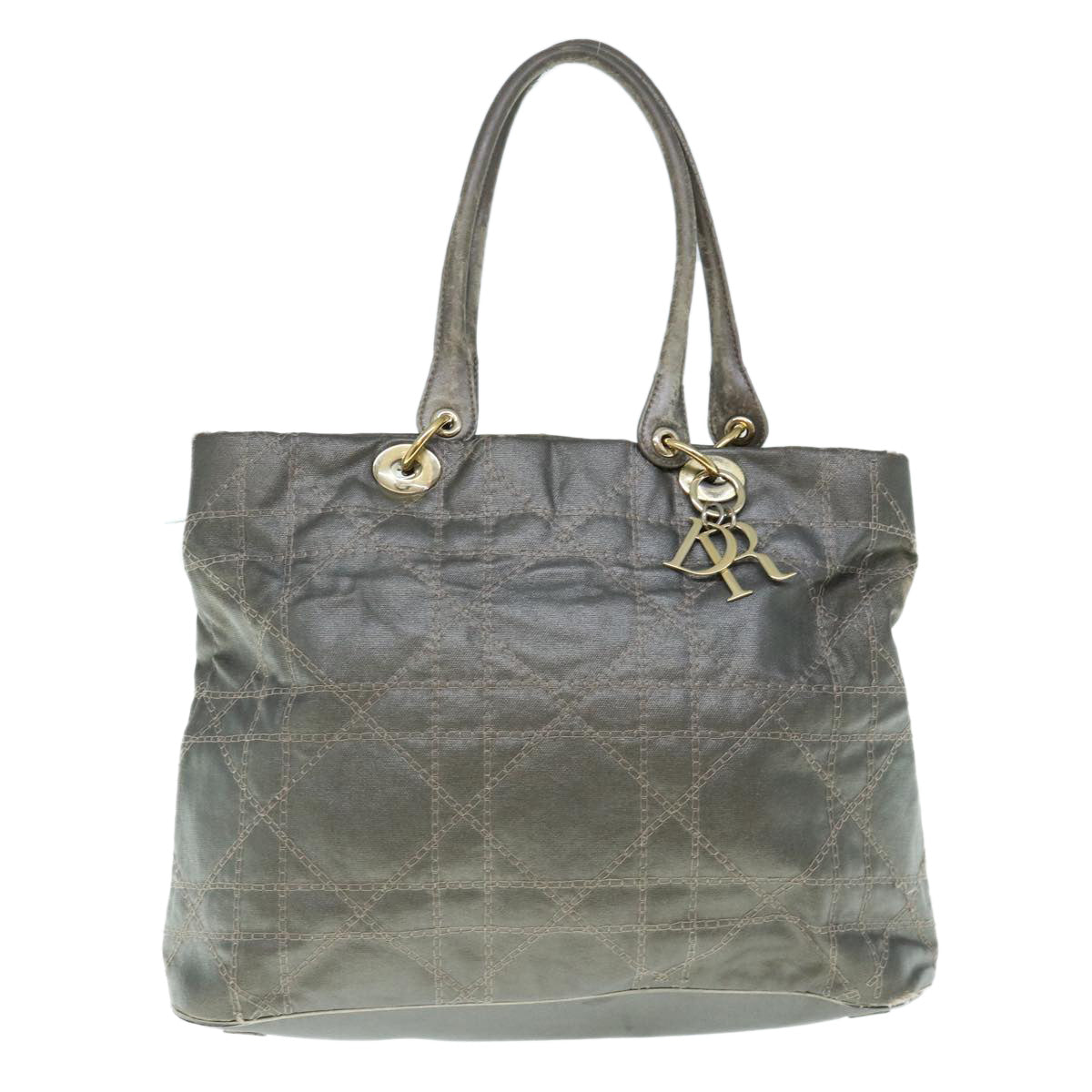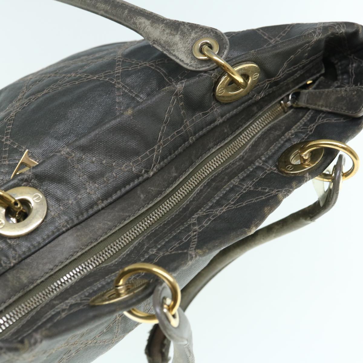 CHRISTIAN DIOR Canage Shoulder Bag Coated Canvas Gray Auth bs11380
