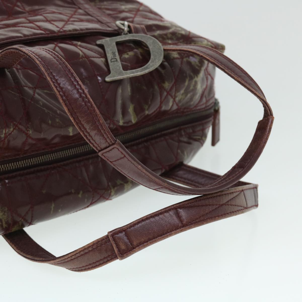 CHRISTIAN DIOR Canage Shoulder Bag Patent leather Wine Red Auth bs8029