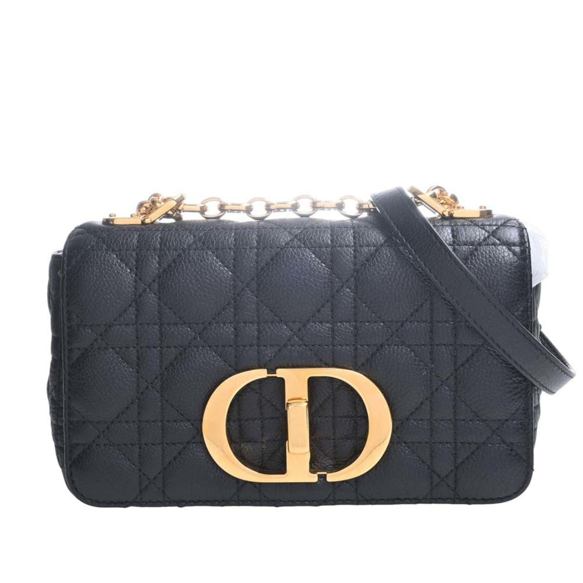 Christian Dior Cannage Leather Caro Small Chain Shoulder Bag Black Women's