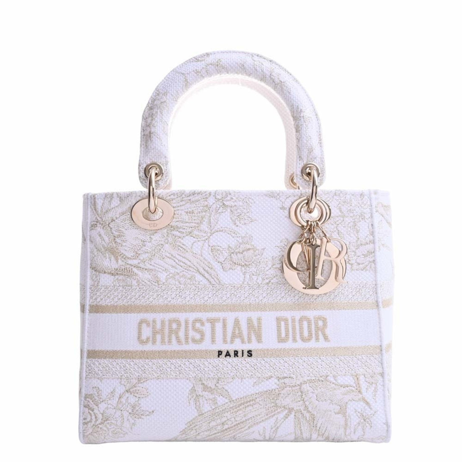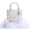 Christian Dior Canvas Lady Delight Embroidered Medium HandBag White Ladies