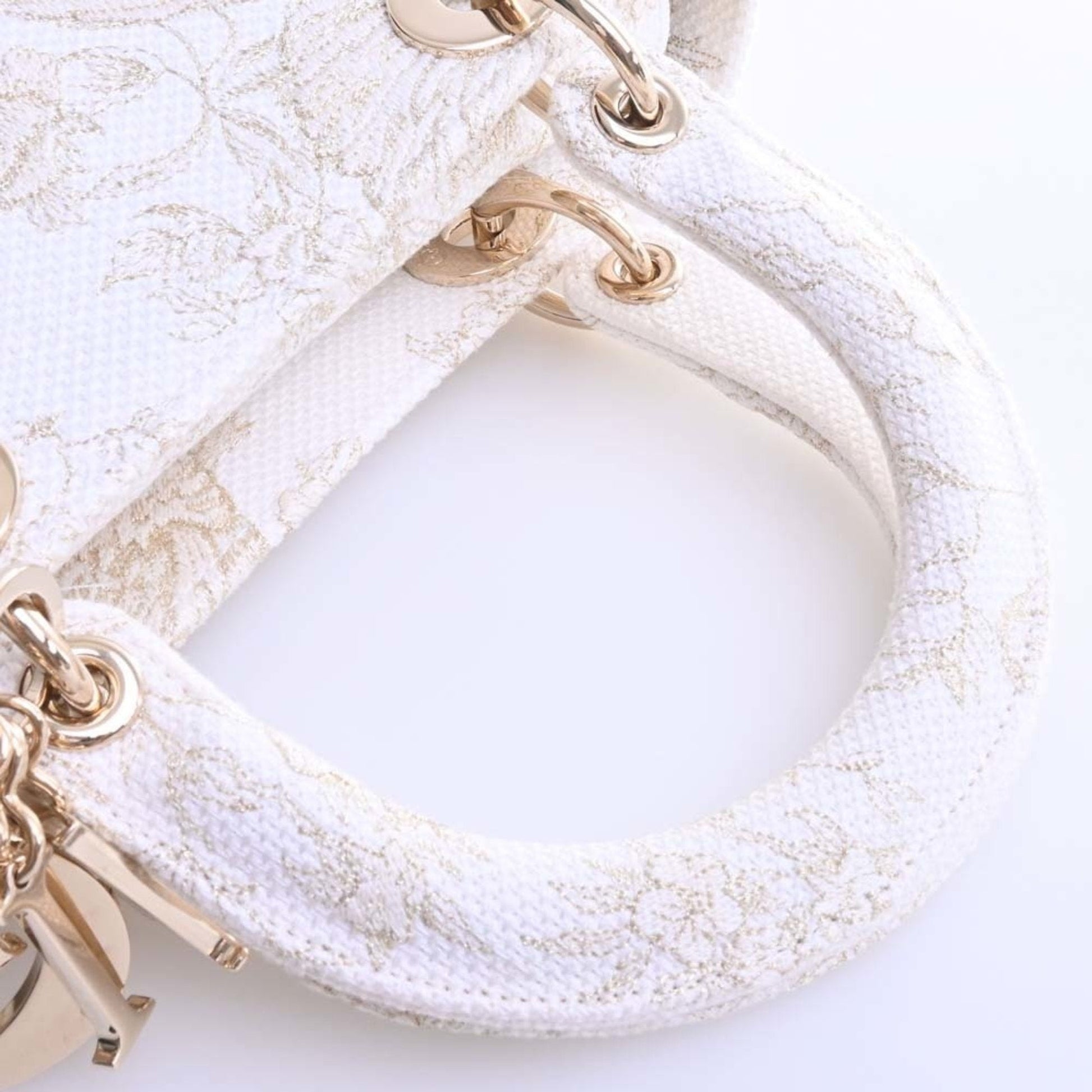 CHRISTIAN DIOR Canvas Lady Delight Embroidered Medium HandBag White Ladies