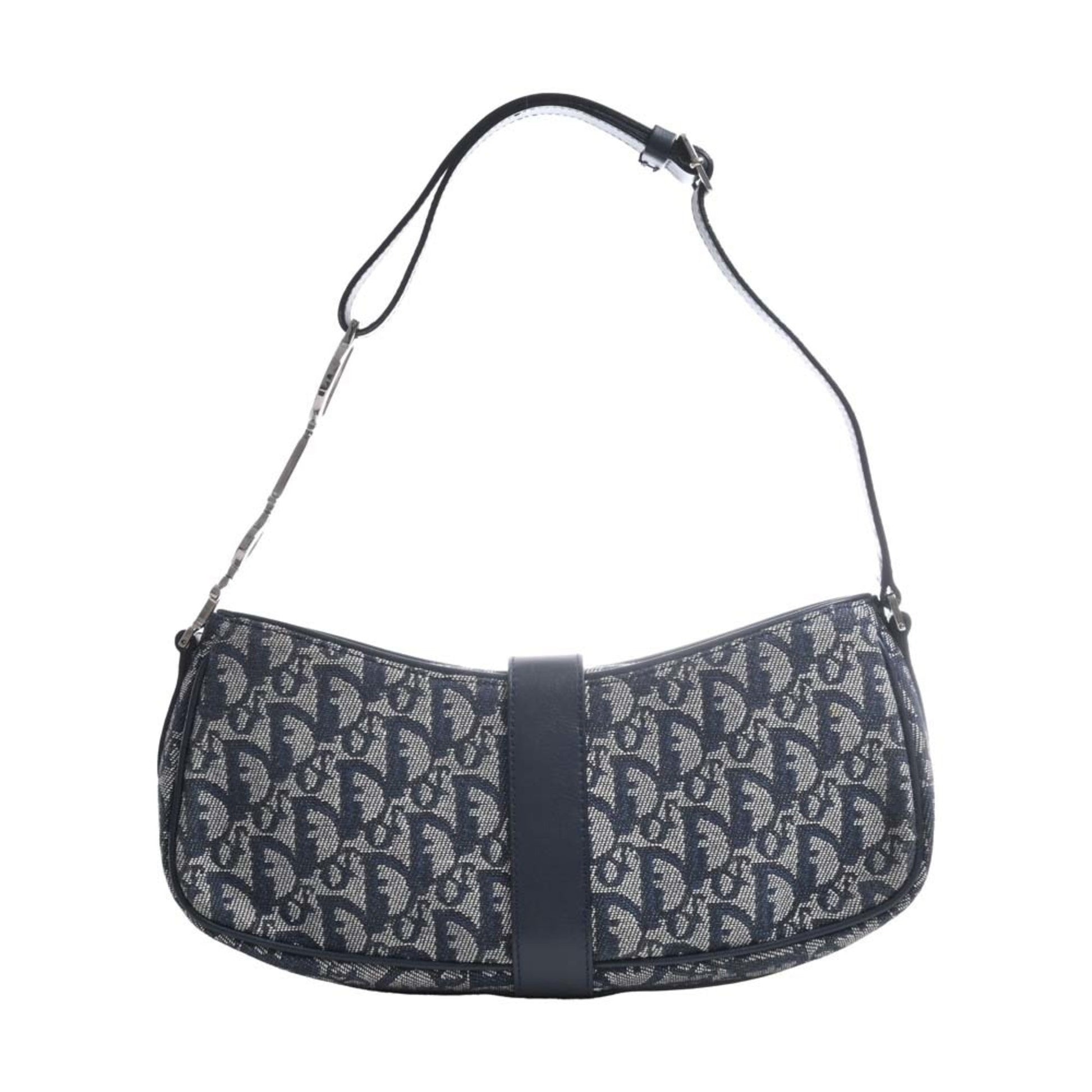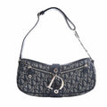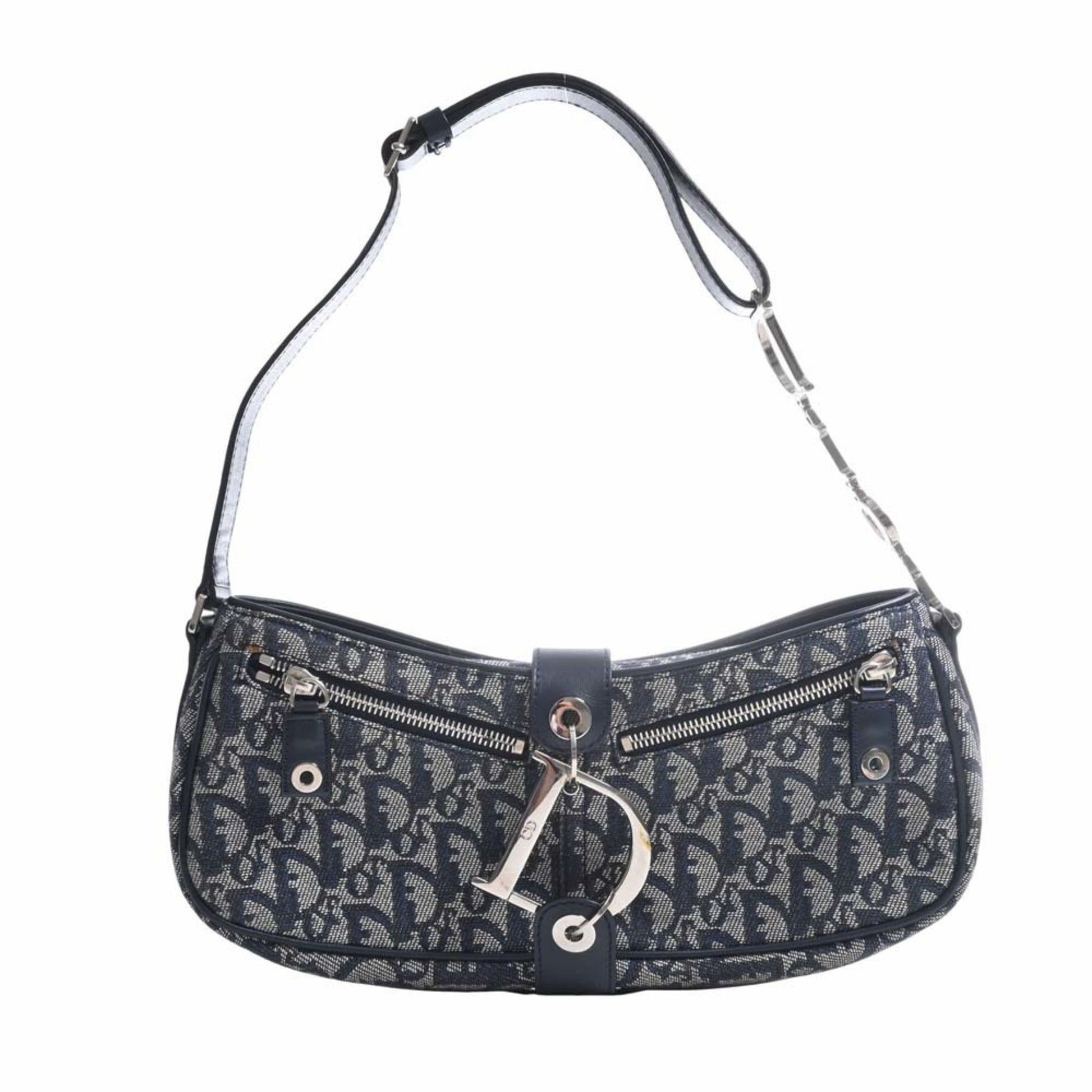 CHRISTIAN DIOR Canvas Leather Trotter One Shoulder Bag Navy Women's