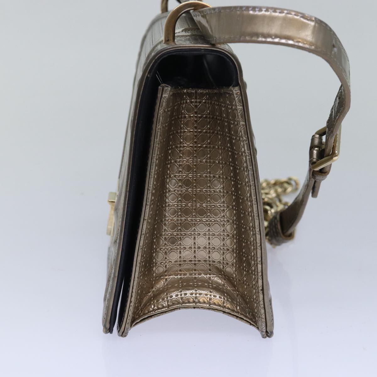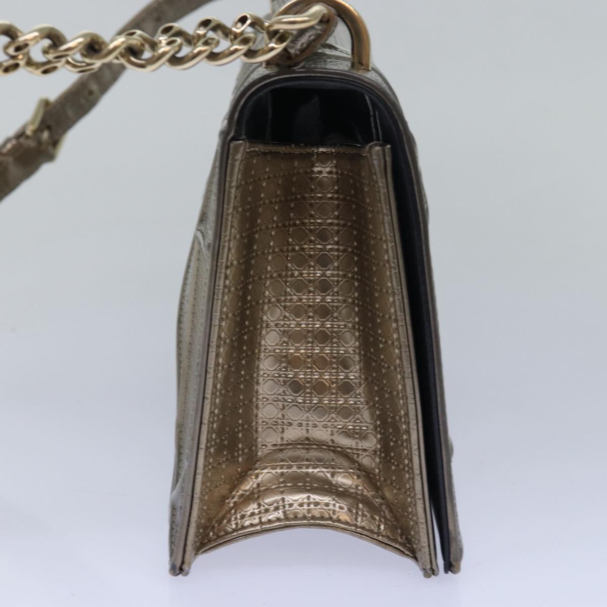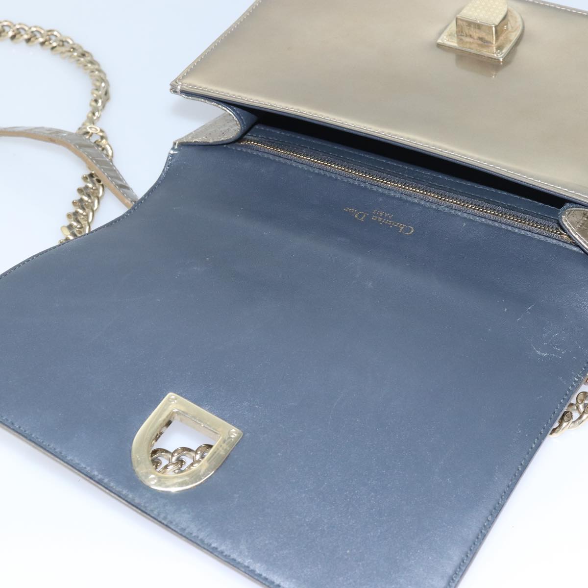 CHRISTIAN DIOR Chain Shoulder Bag Enamel Gold Auth 82071