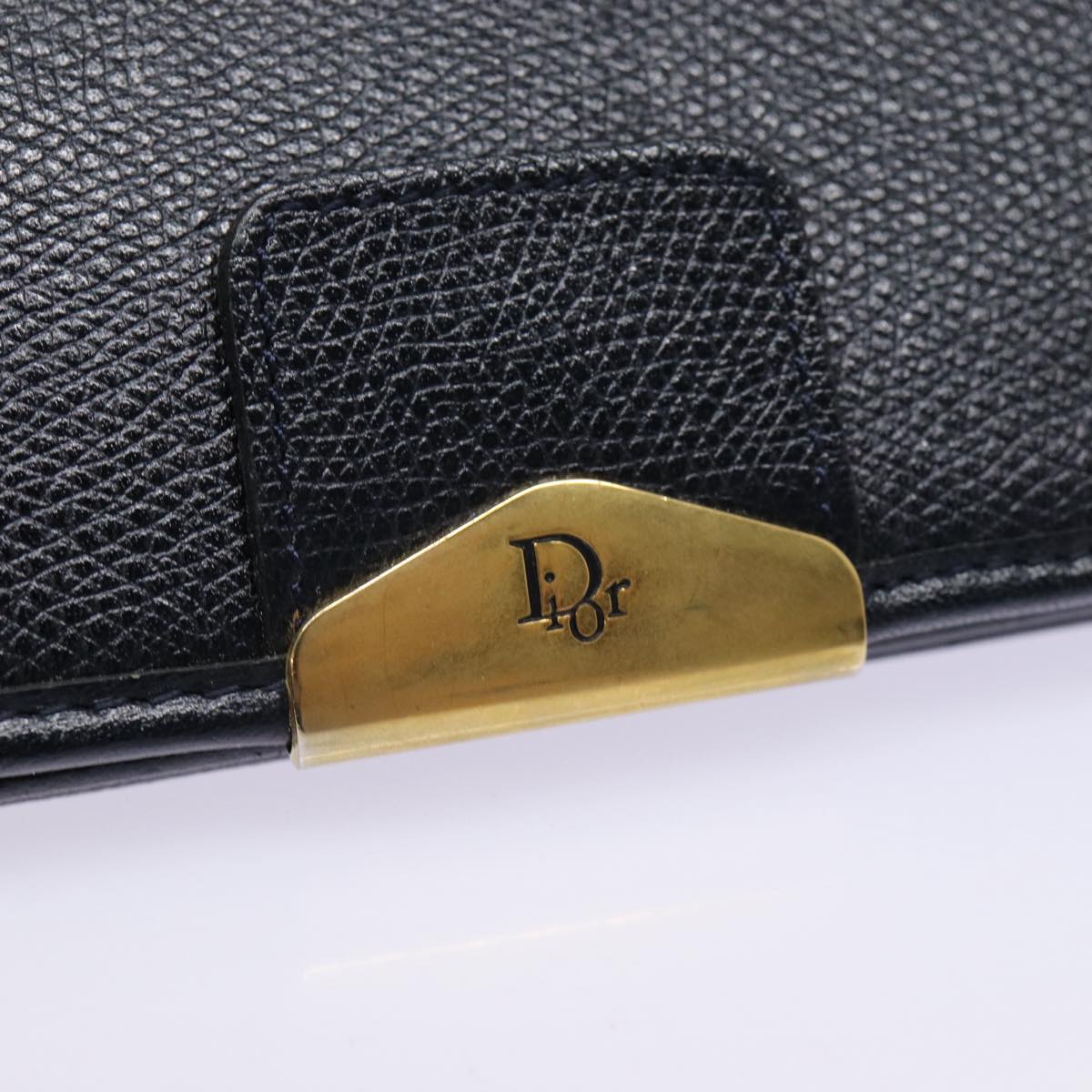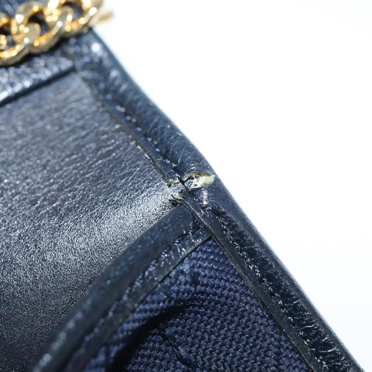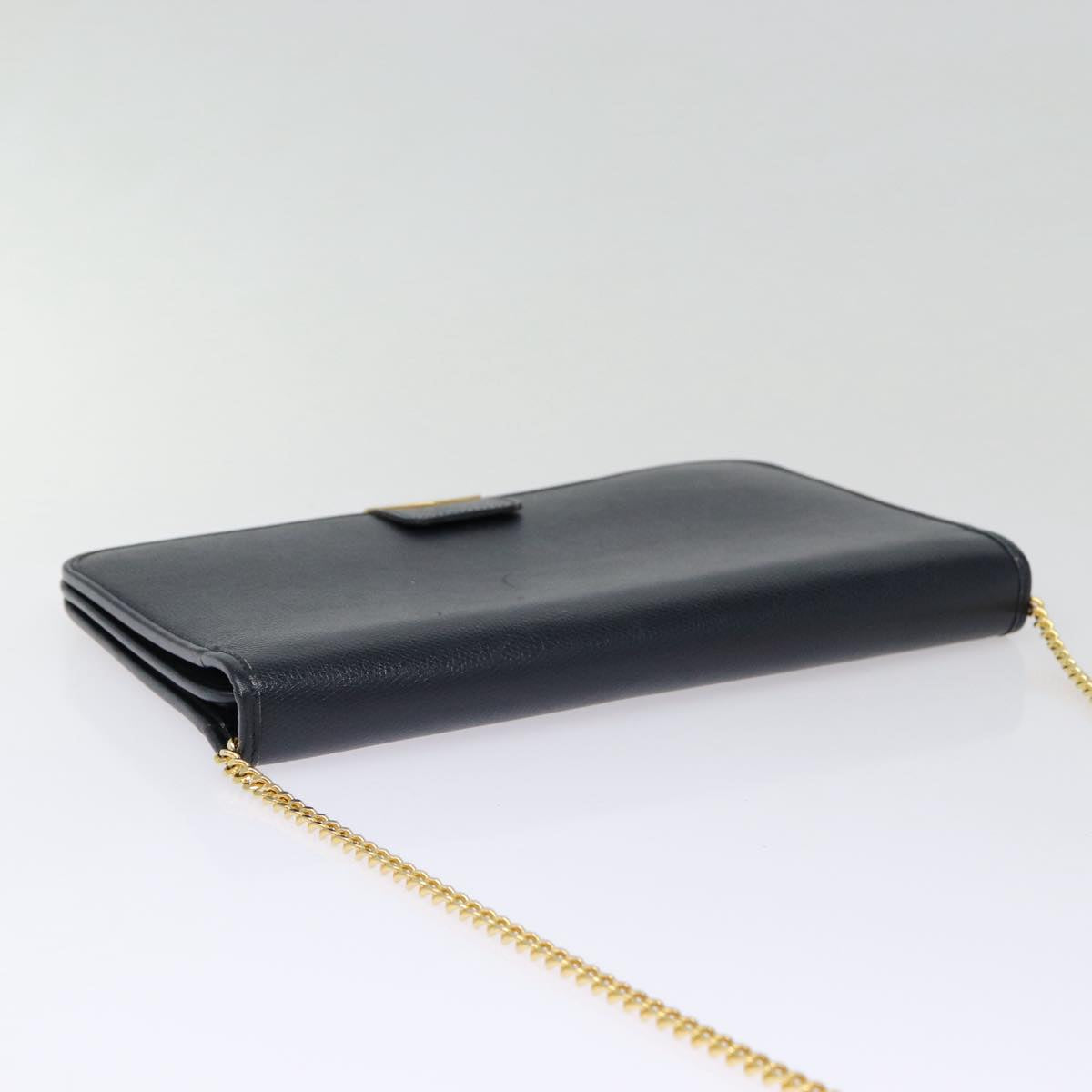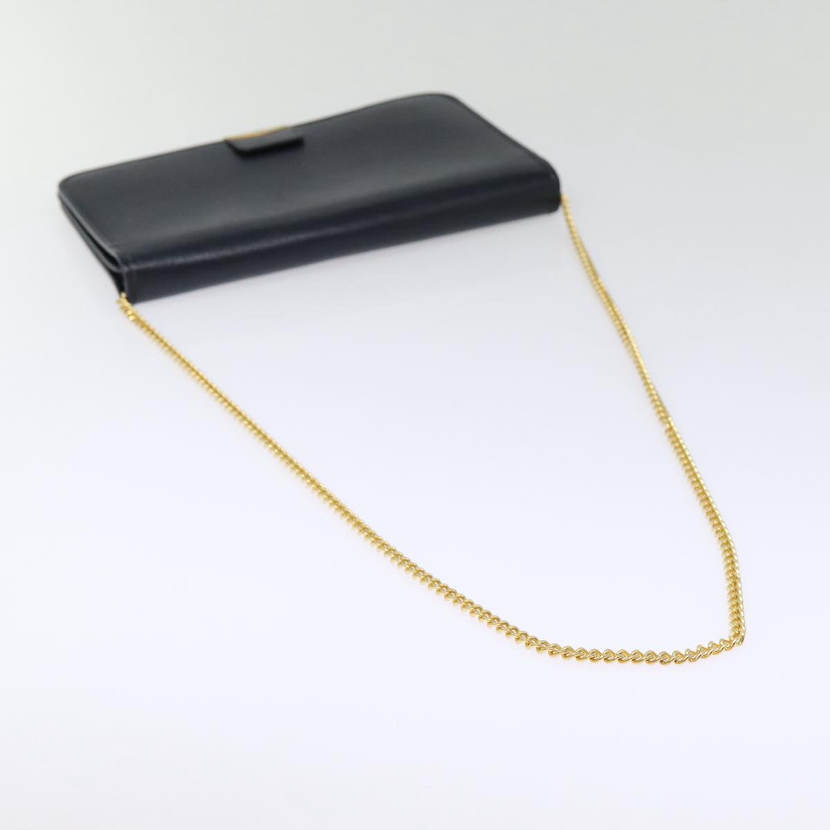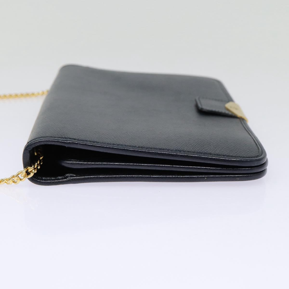 CHRISTIAN DIOR Chain Shoulder Bag Leather Black Gold Auth ep5494