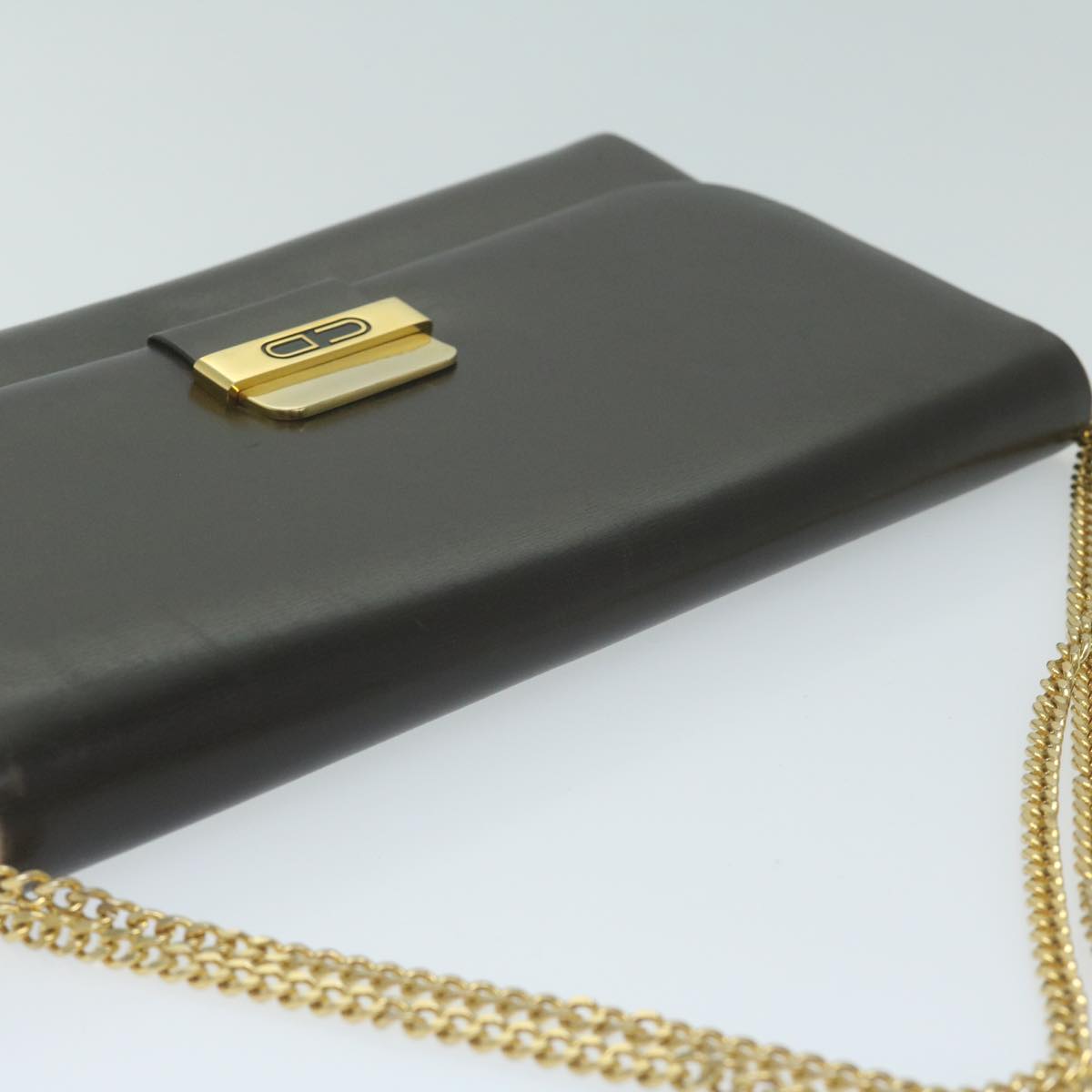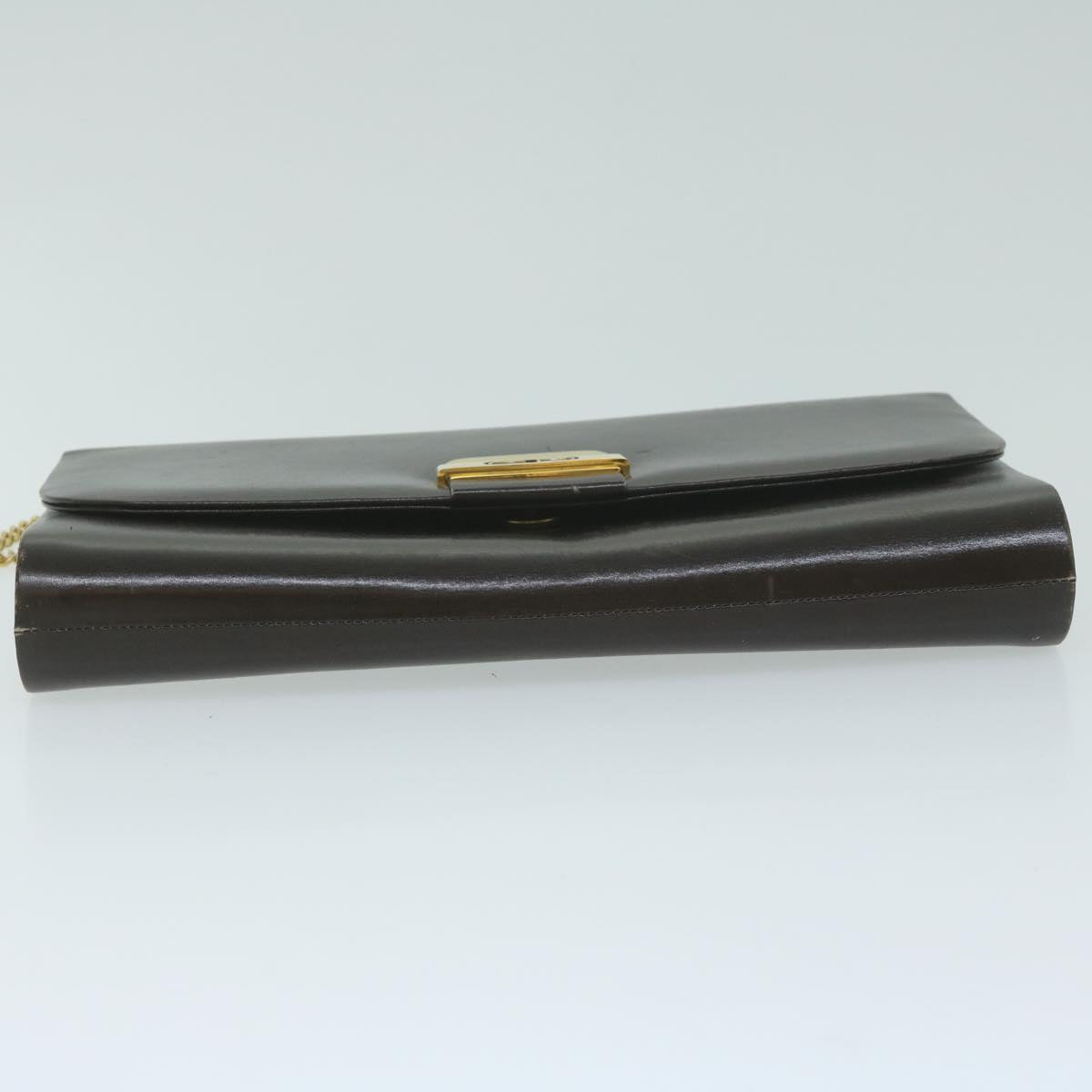 CHRISTIAN DIOR Chain Shoulder Bag Leather Brown Auth bs11469