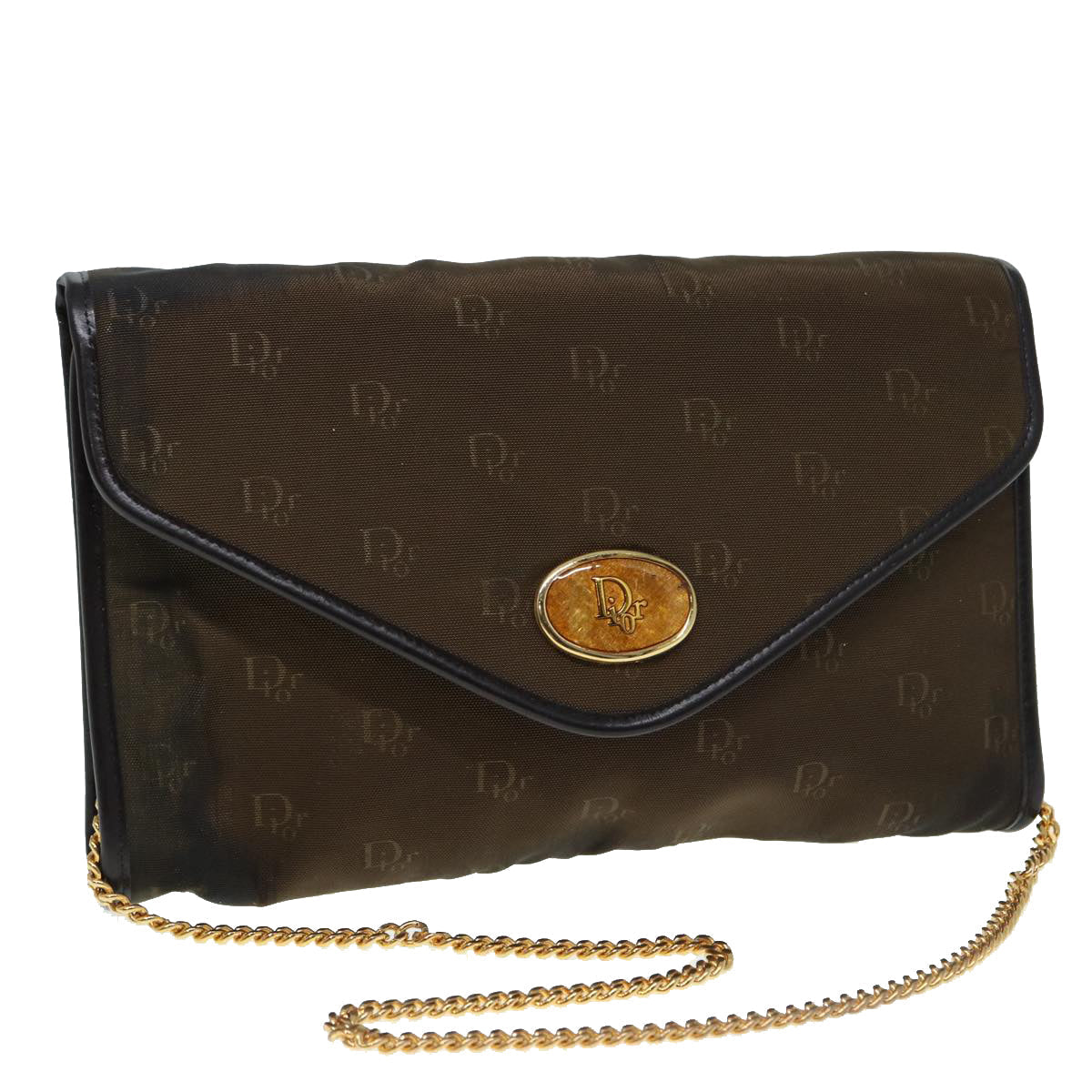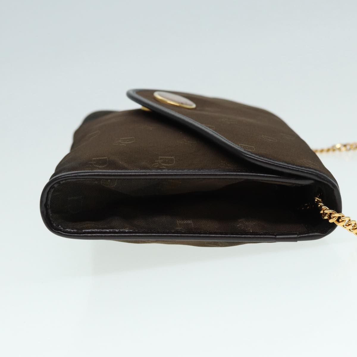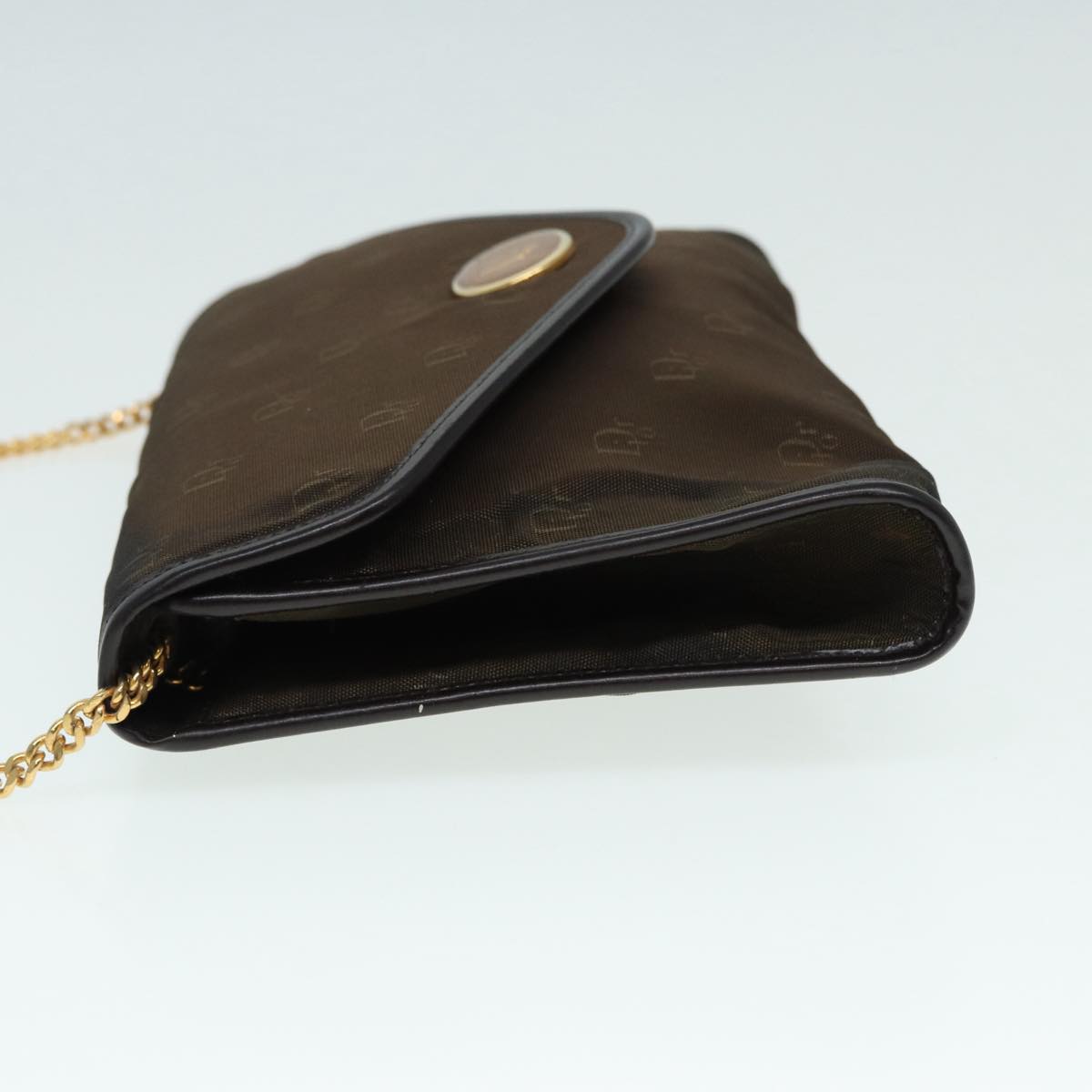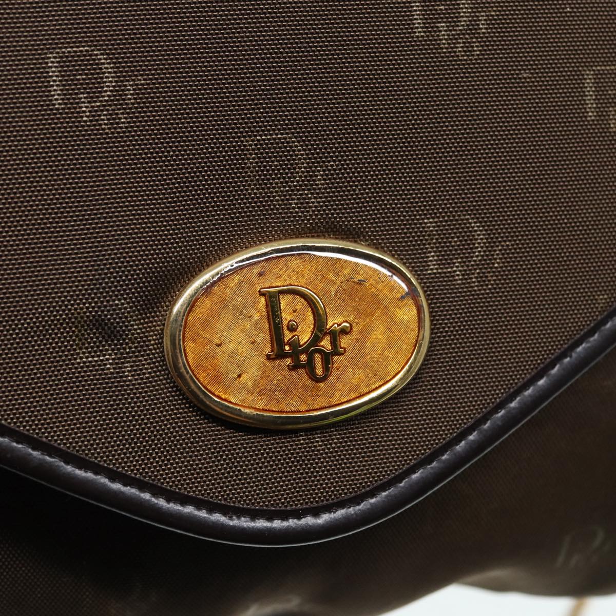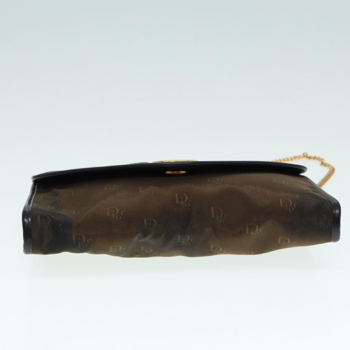 CHRISTIAN DIOR Chain Shoulder Bag Nylon Brown Gold Auth bs17771