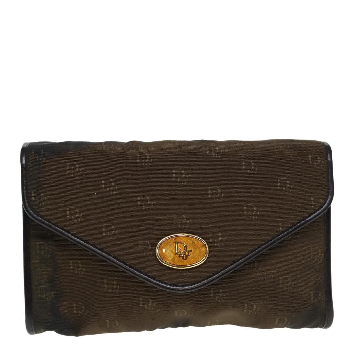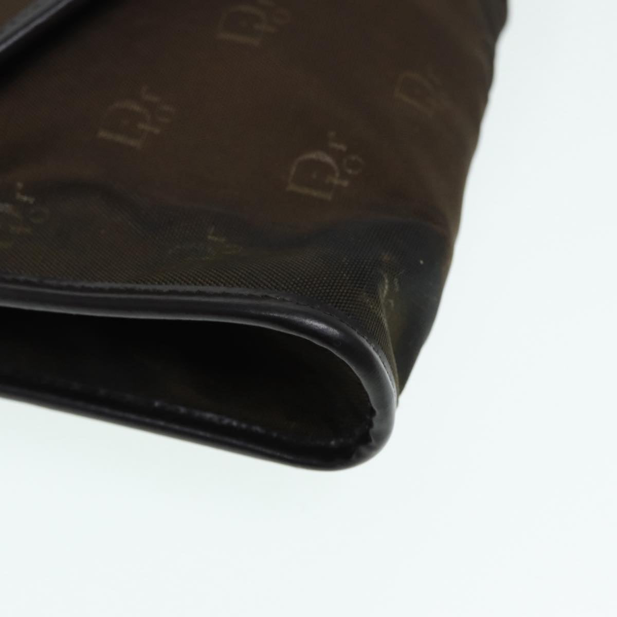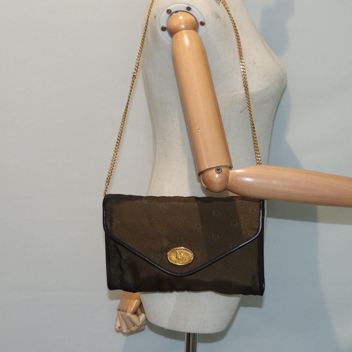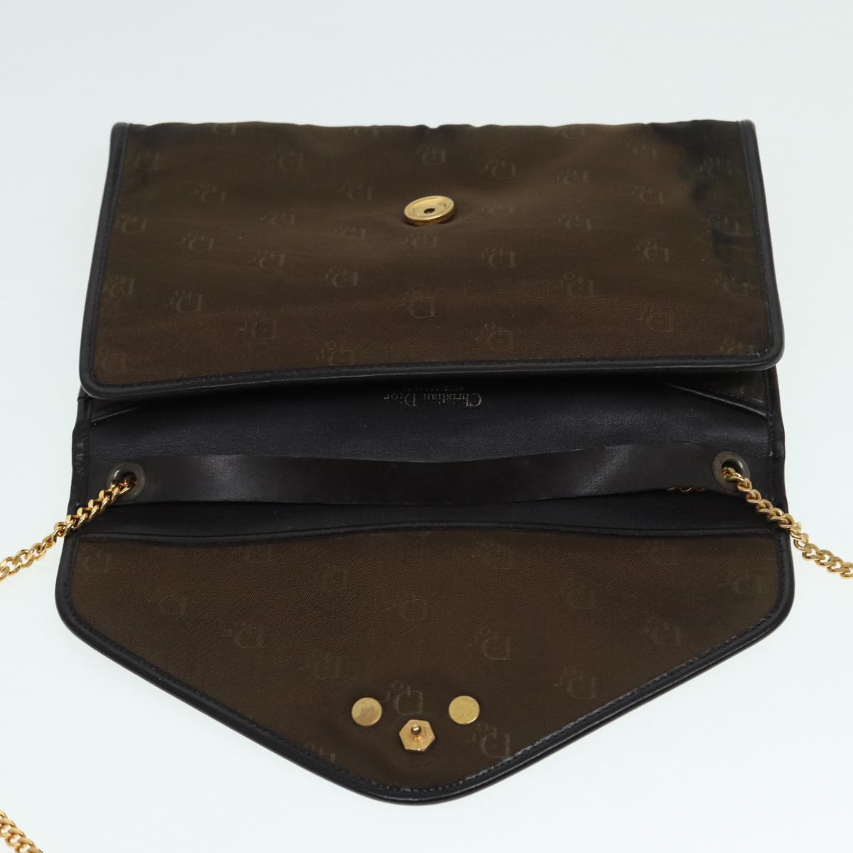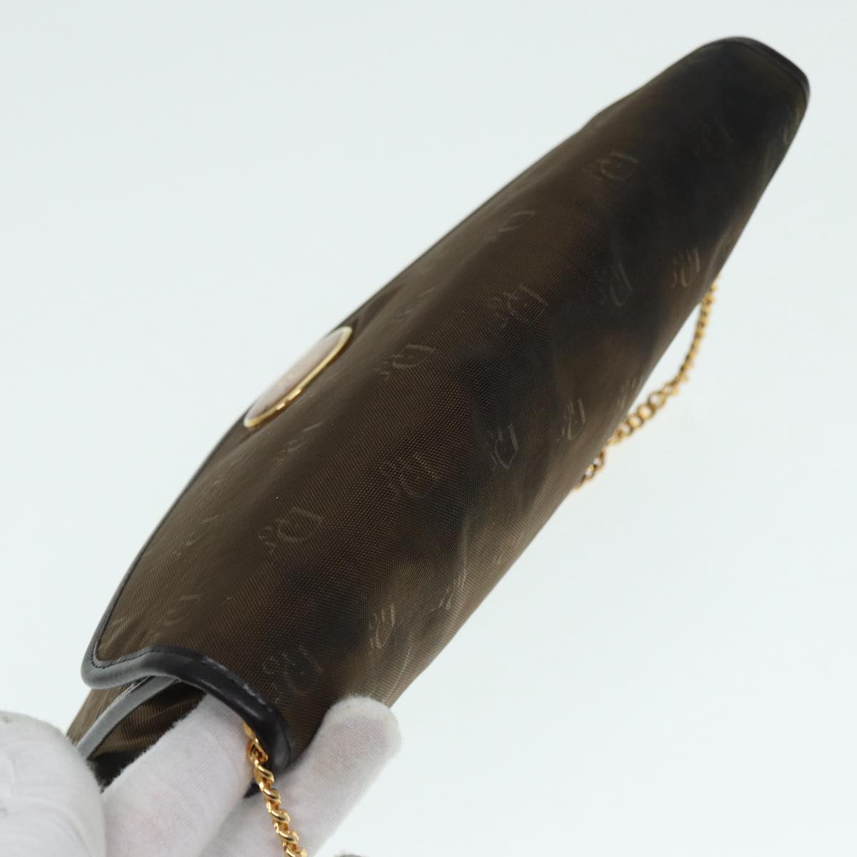 CHRISTIAN DIOR Chain Shoulder Bag Nylon Brown Gold Auth bs17771
