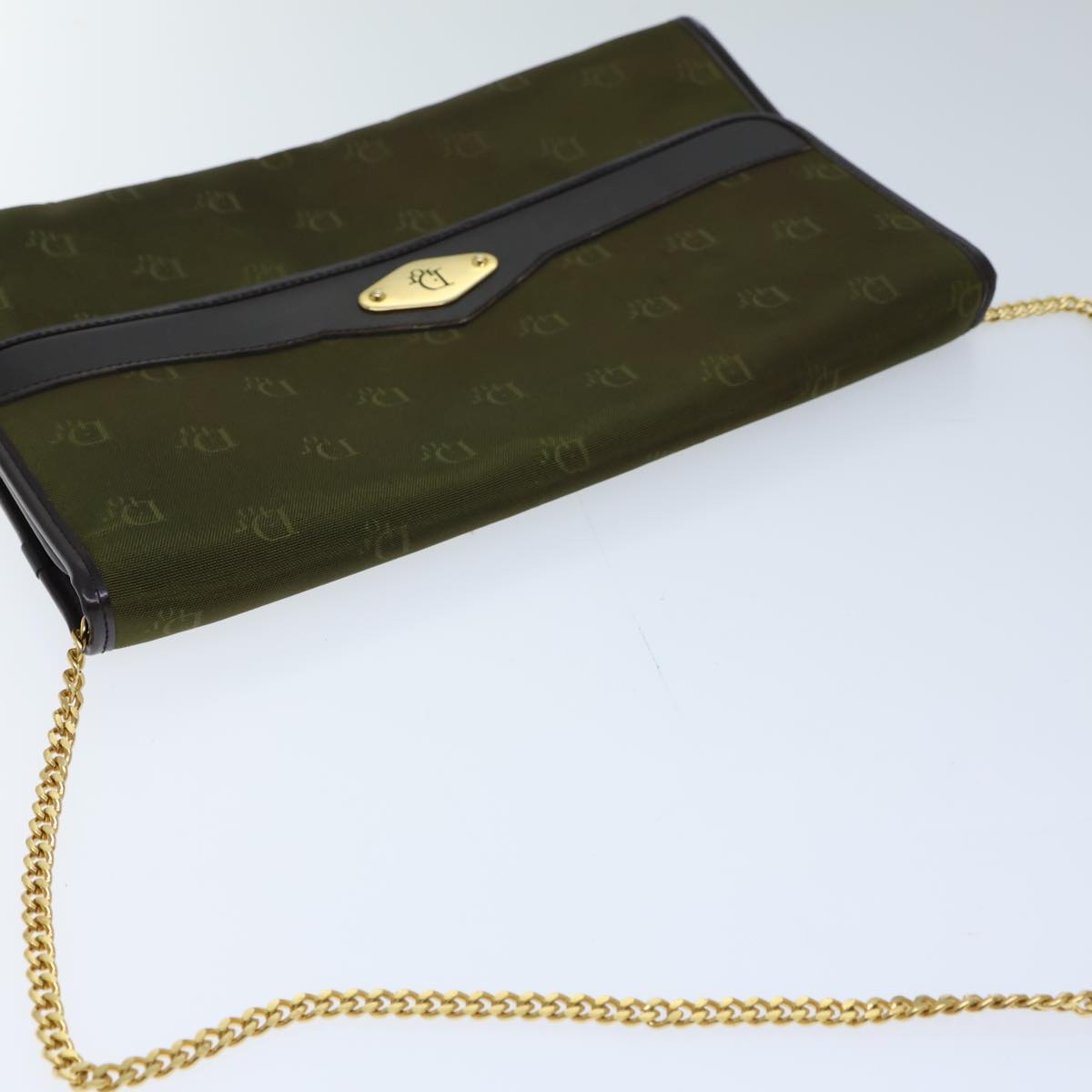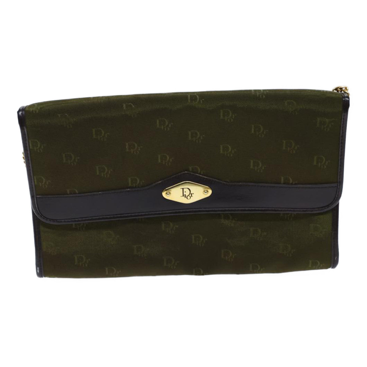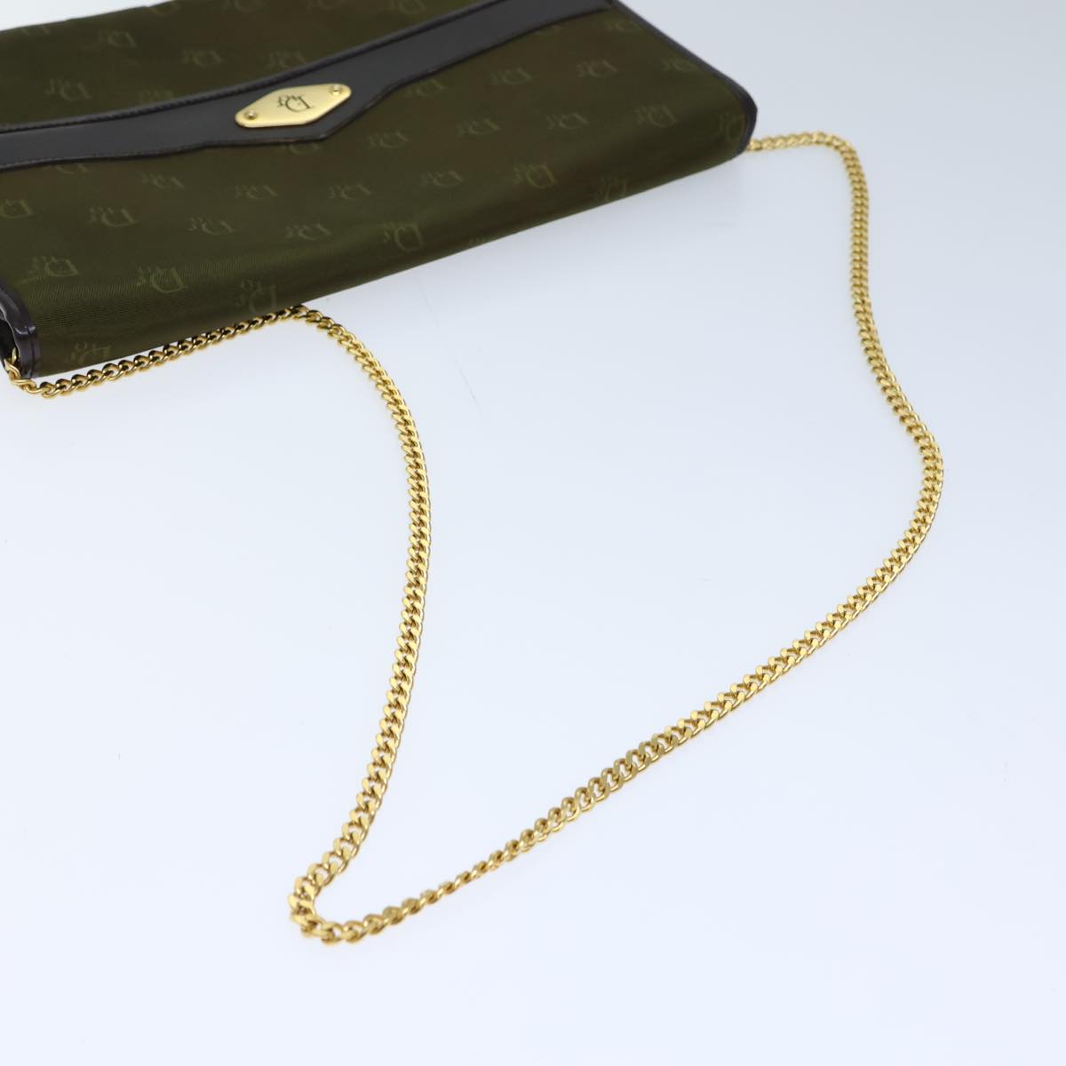 CHRISTIAN DIOR Chain Shoulder Bag Nylon Green Auth ac2954