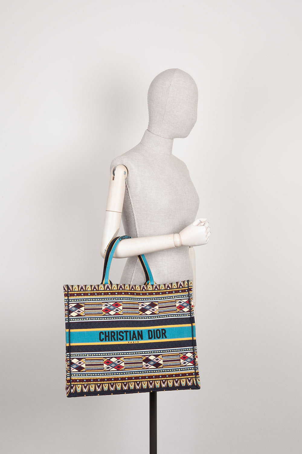 About: Die Dior Book Tote wurde unter der Art Direction von Maria Grazia Chiuri in die Kollektionen Dior's eingeführt. Seit ihrer ersten Herausgabe in der SS 2018 Kollektion gehört sie zu den Highlights des Hauses und wird jedes Jahr in neuen Farben, Mustern und Materialien neu interpretiert.