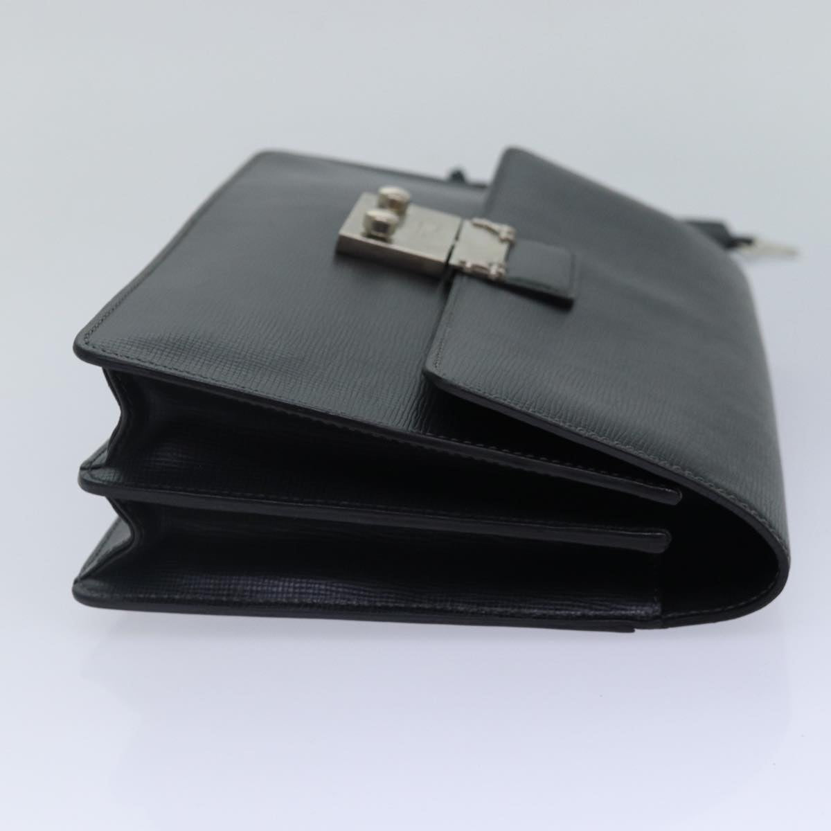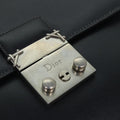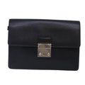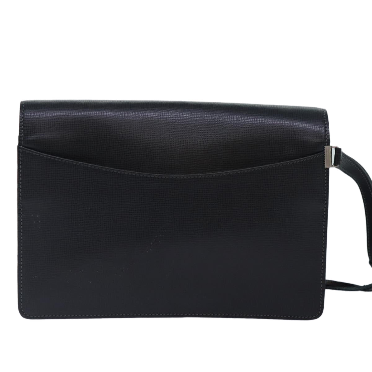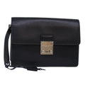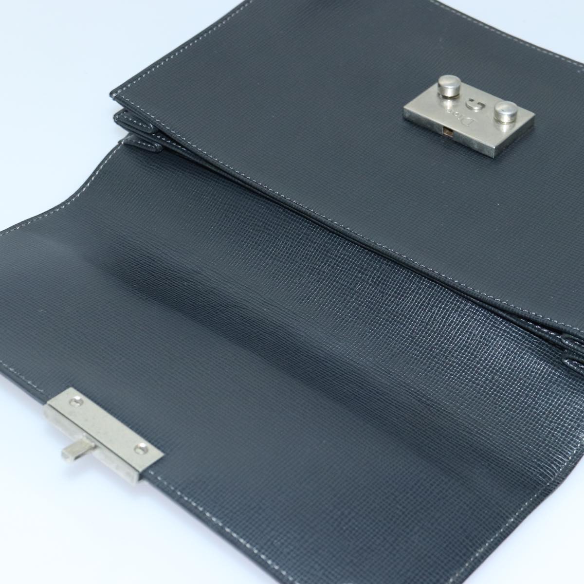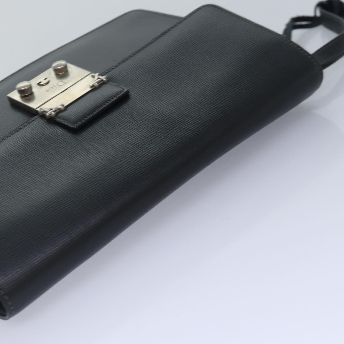 CHRISTIAN DIOR Clutch Bag Leather Black Silver Auth bs17656