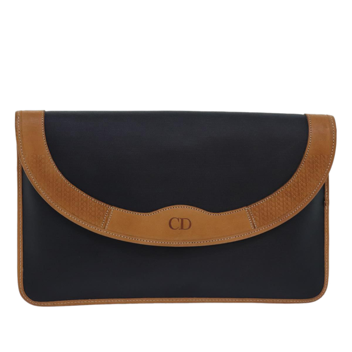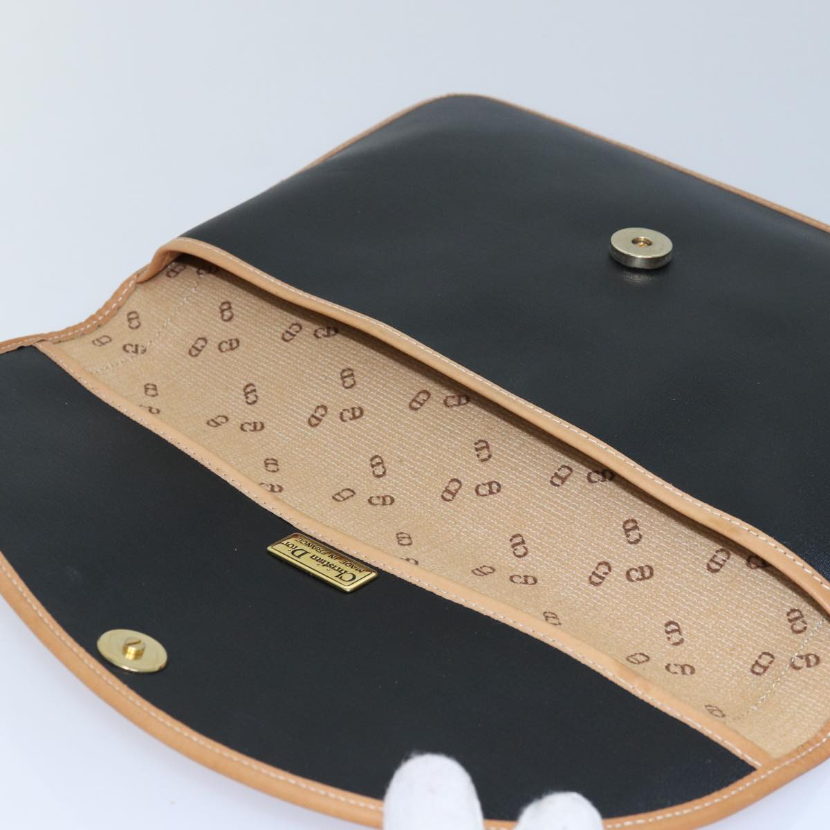 CHRISTIAN DIOR Clutch Bag Nylon Black Beige Auth 81010